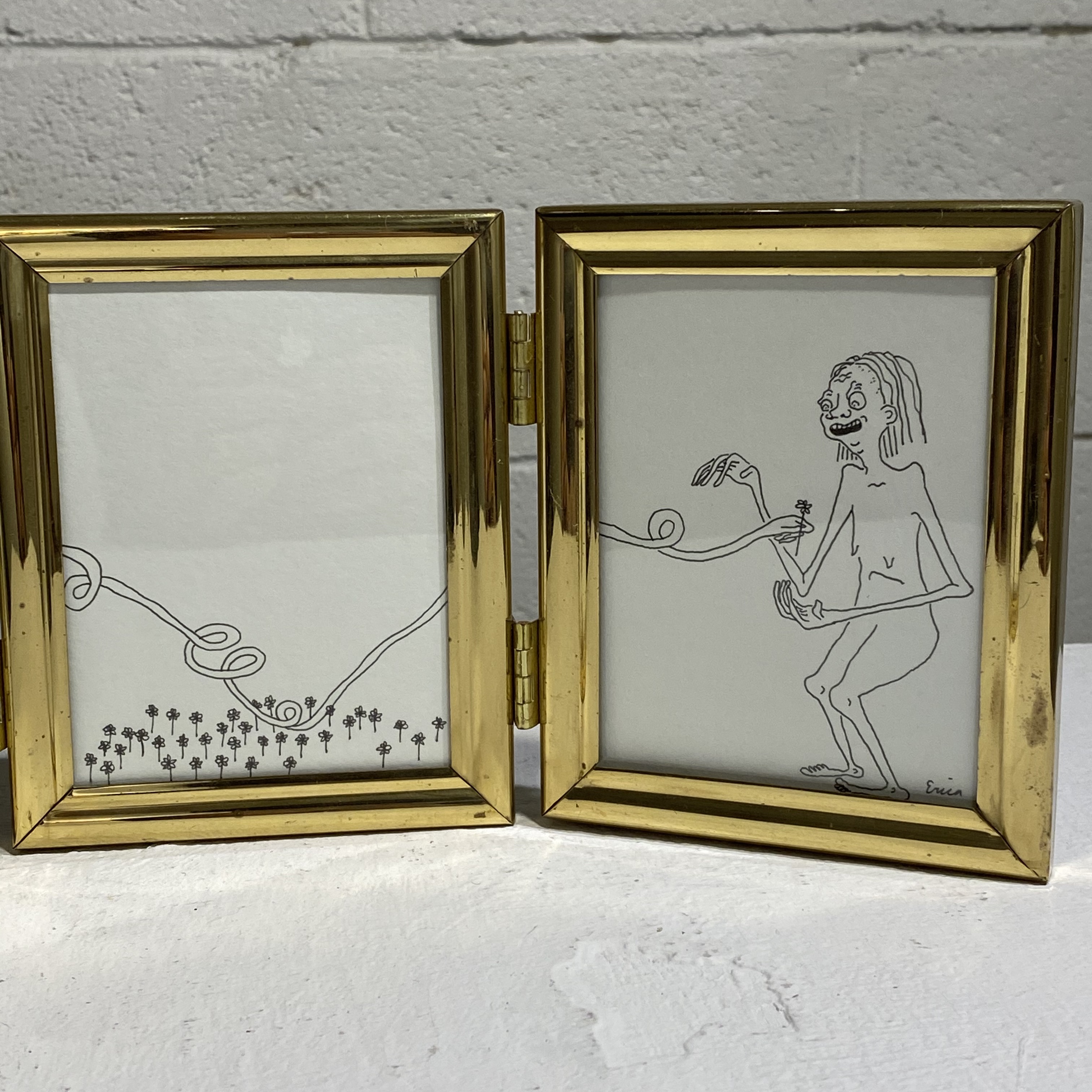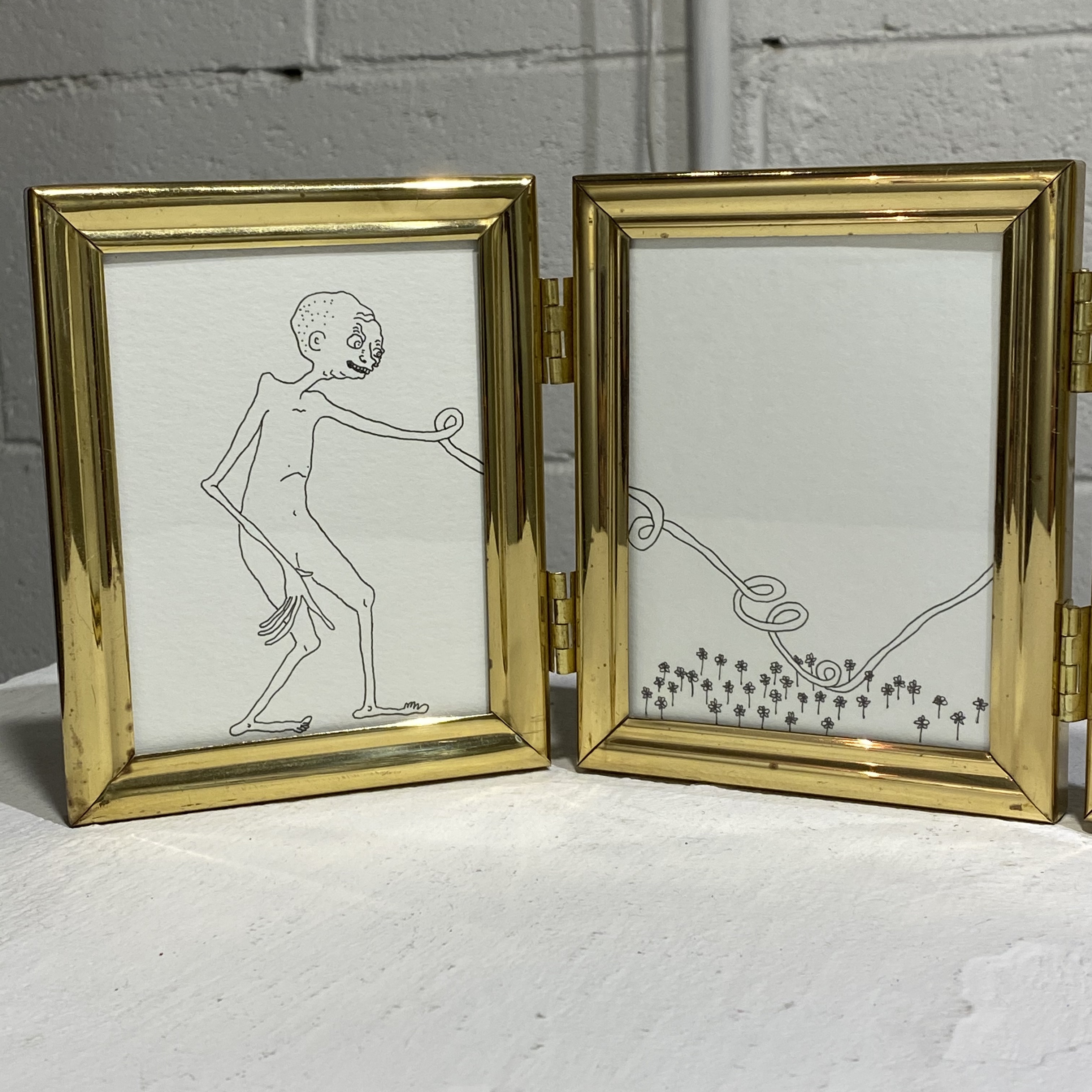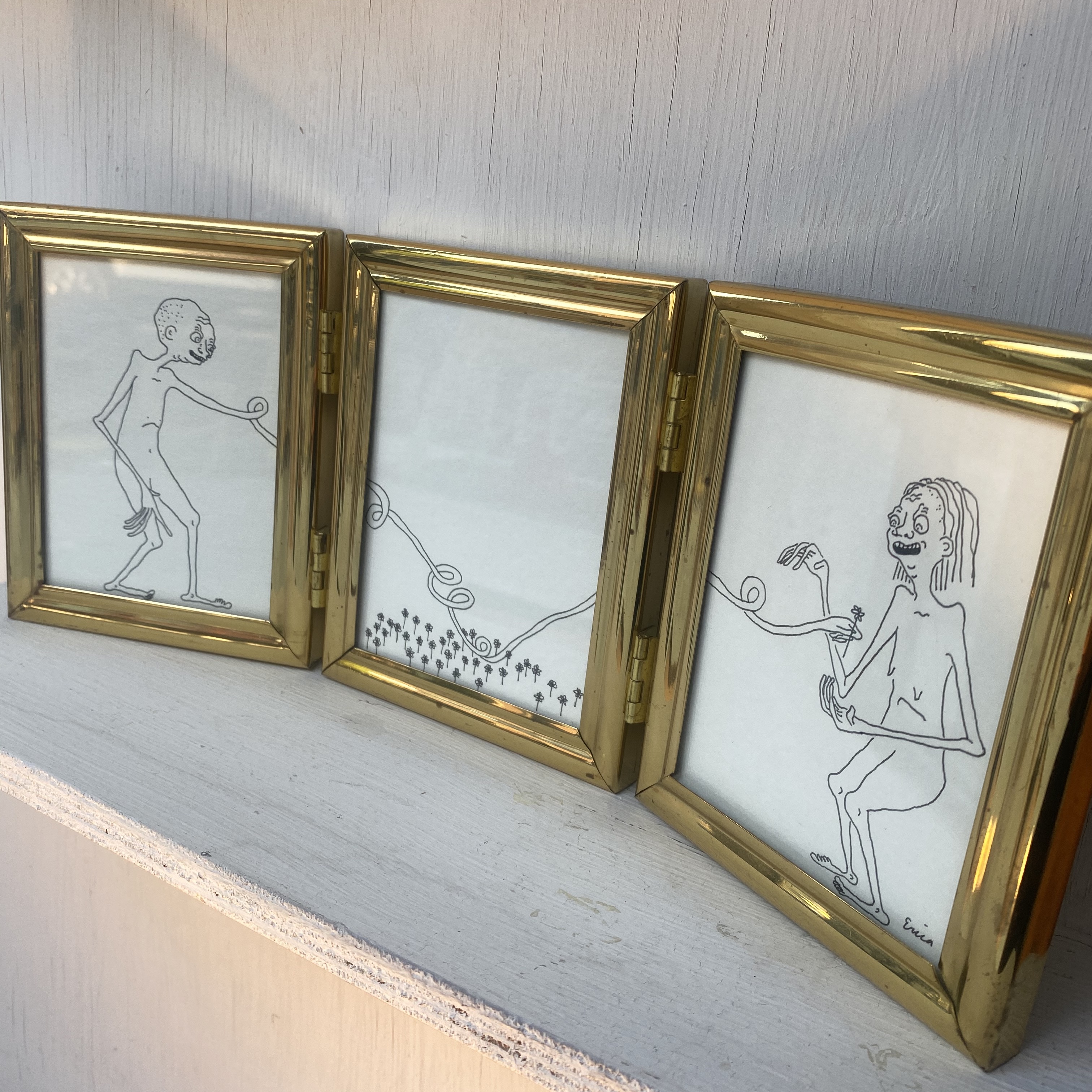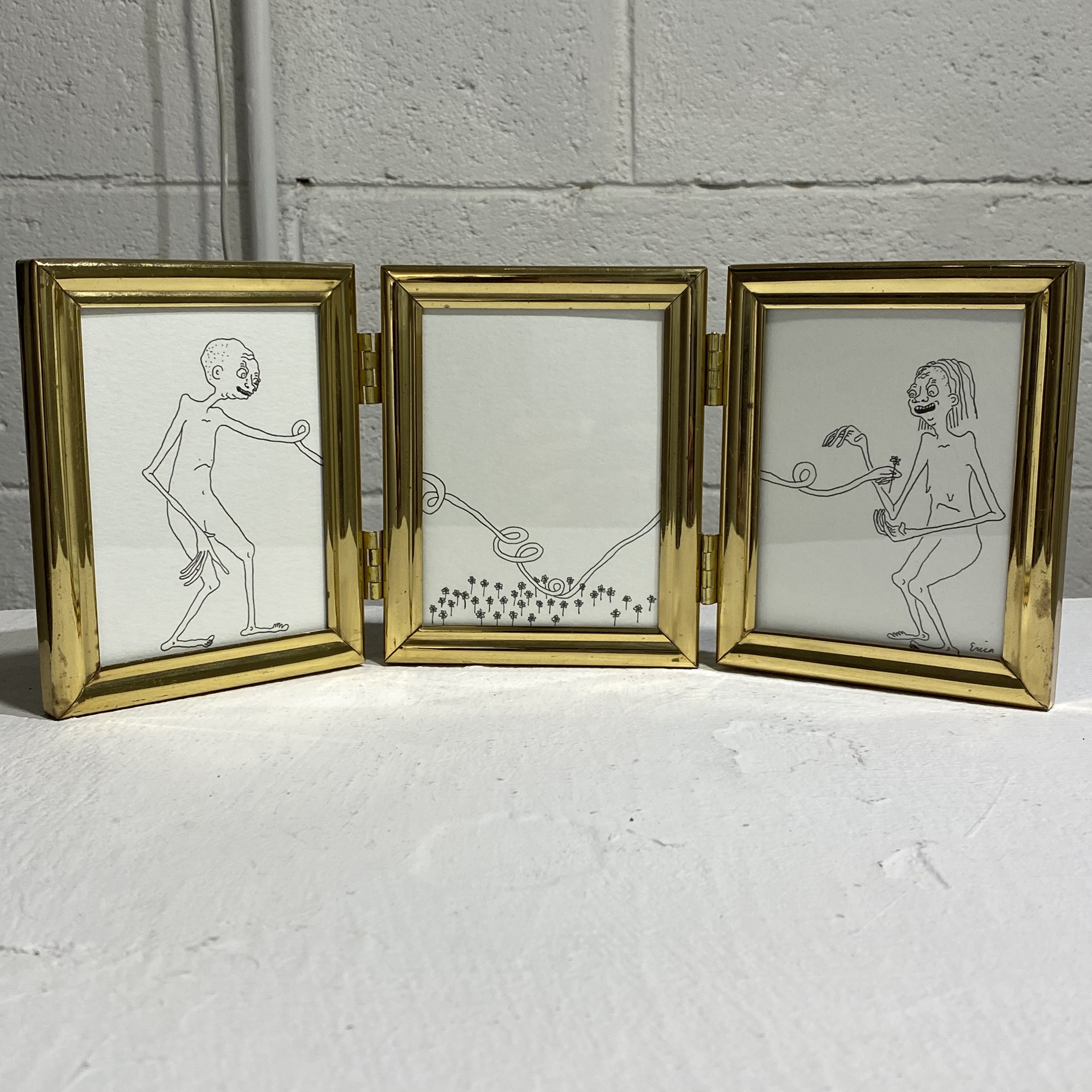 Size: Triptych Drawing in about 2.5" x 3" 3 papers (in about 4"x5" triptych frame)