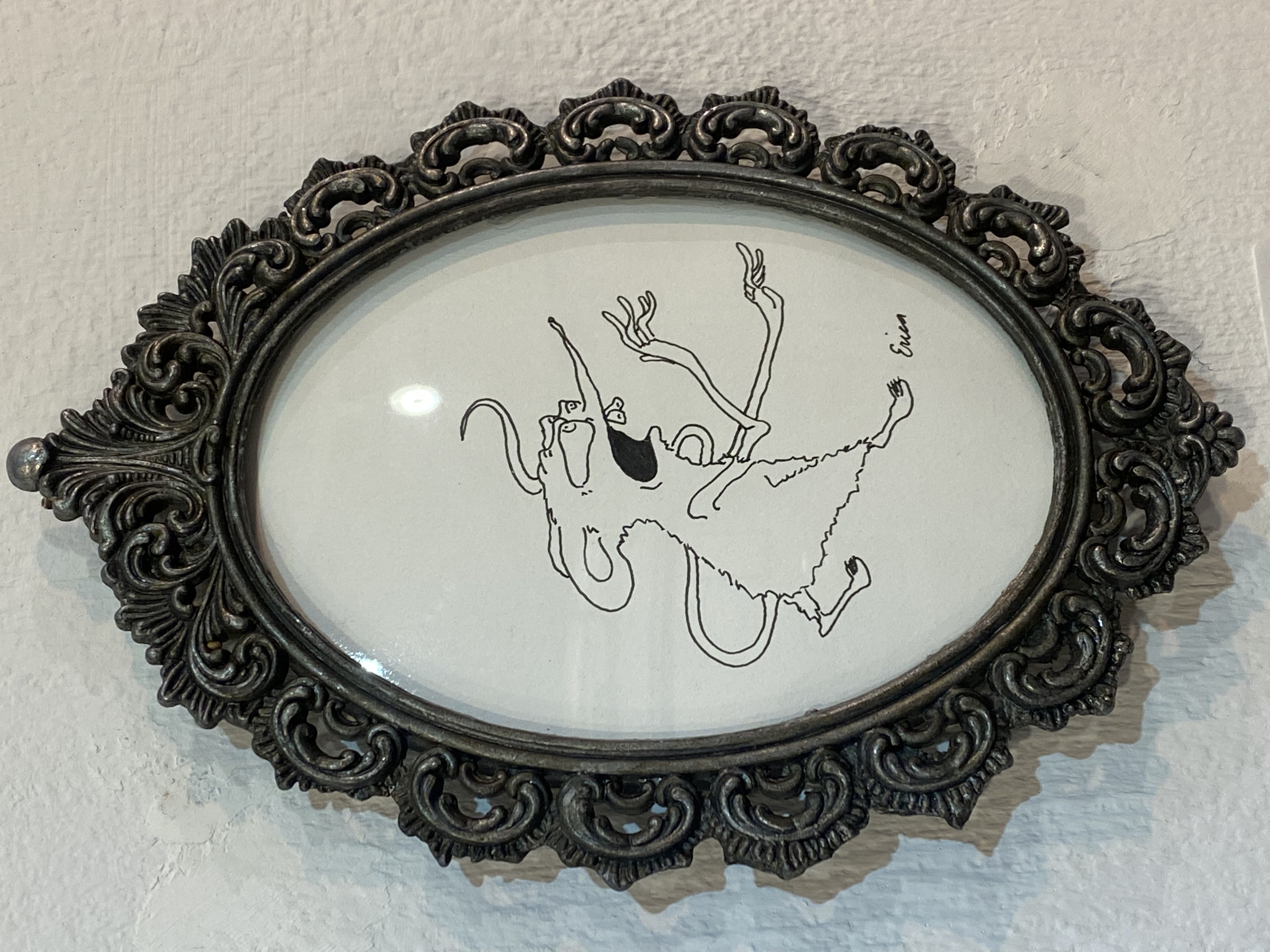 Size: Drawing in approximate 6 3/4" x 4 3/4" vintage Gothic metaric Frame