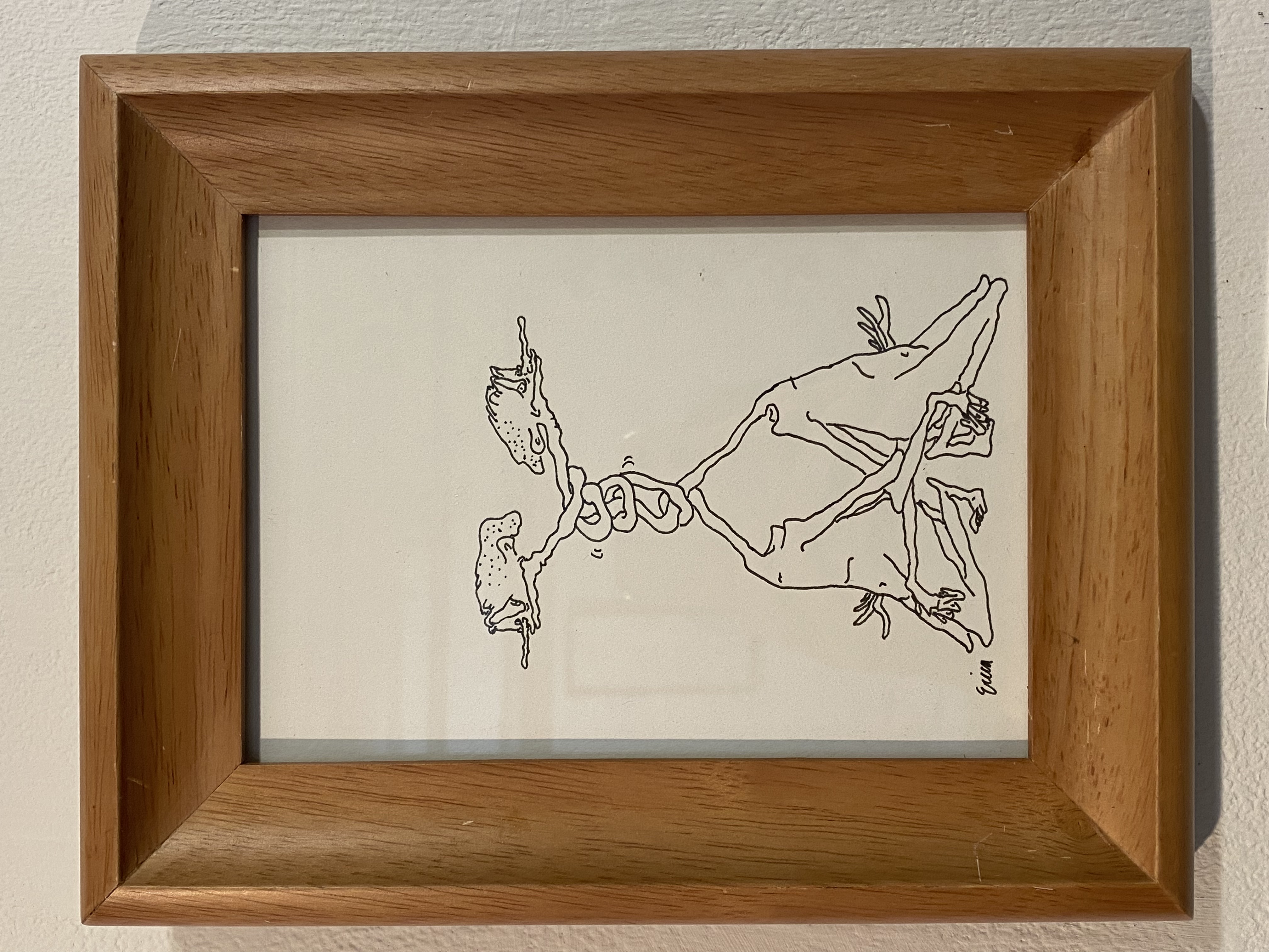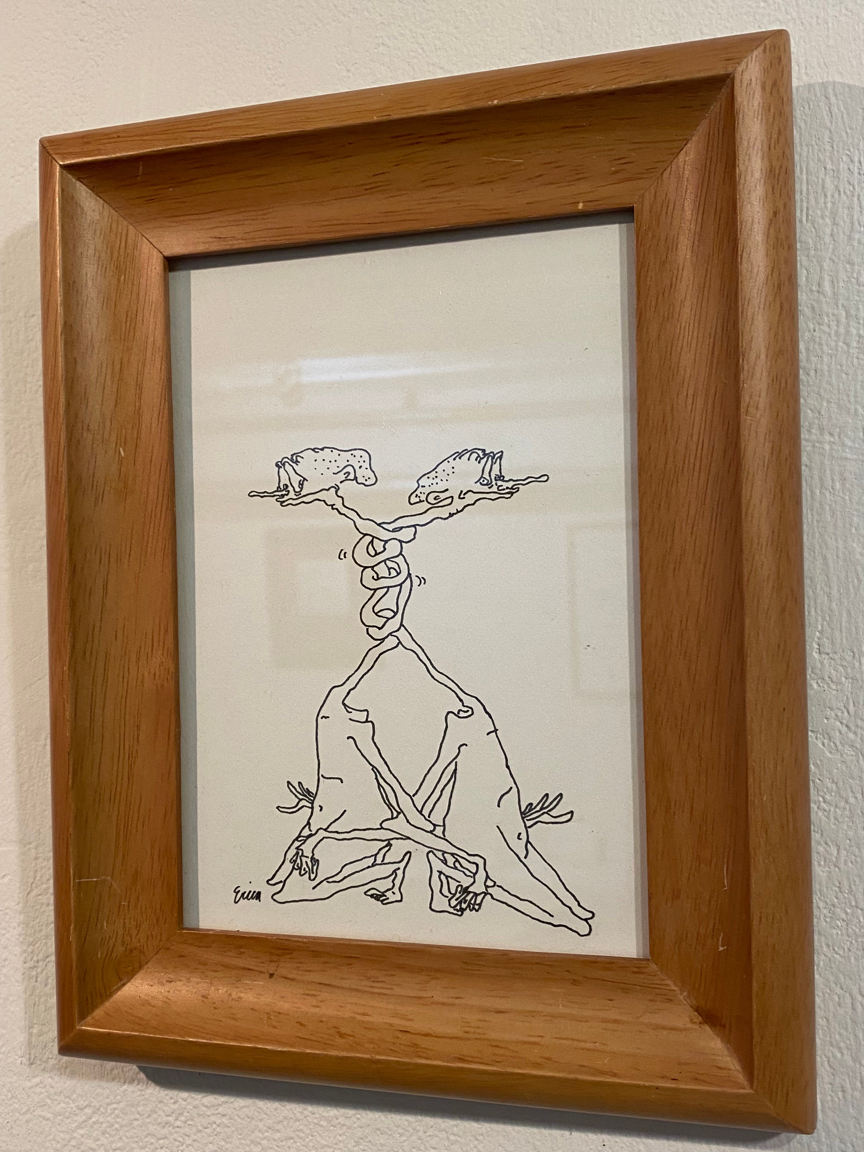 Ink on paper, framed in a vintage frame.