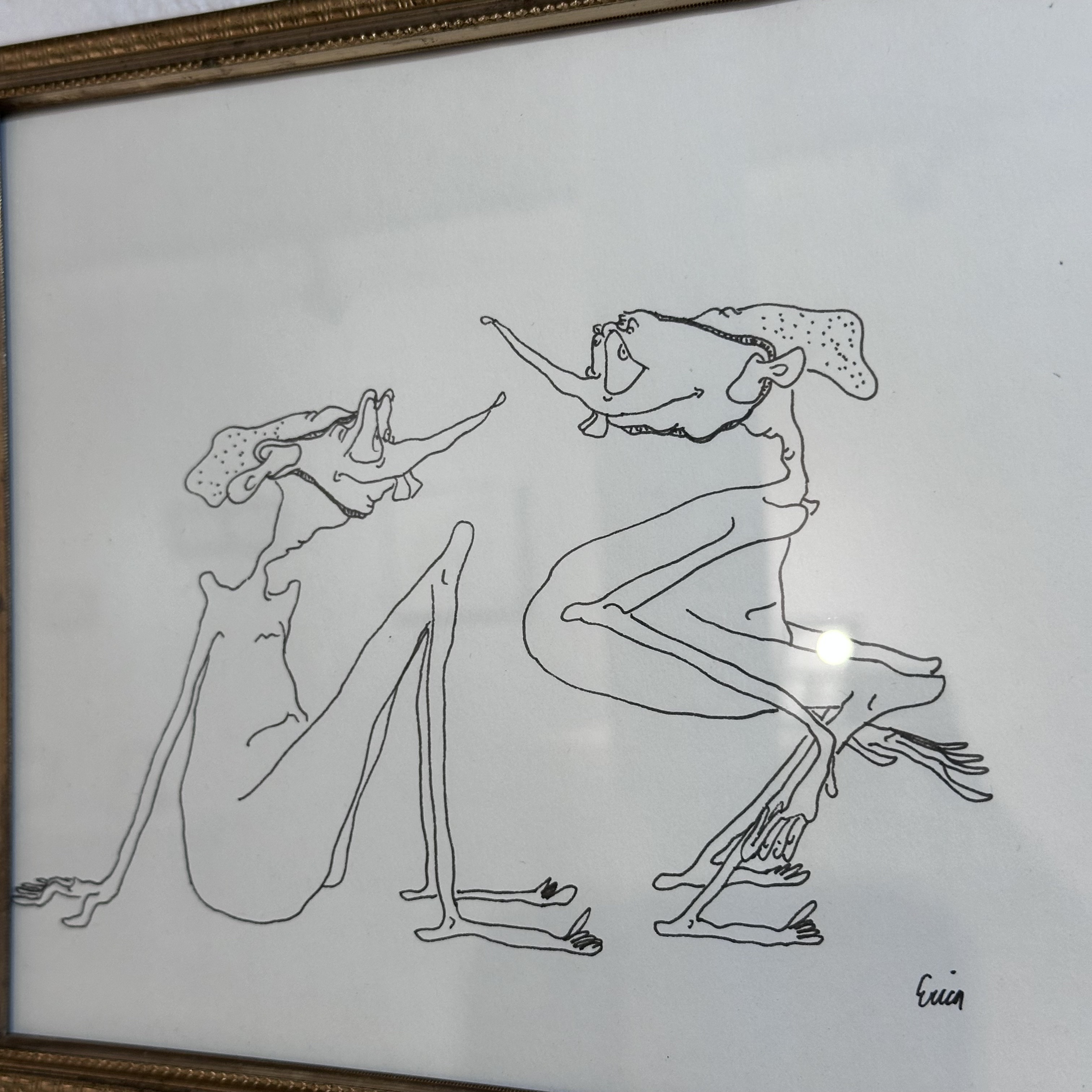Ink on paper, framed in a vintage frame.