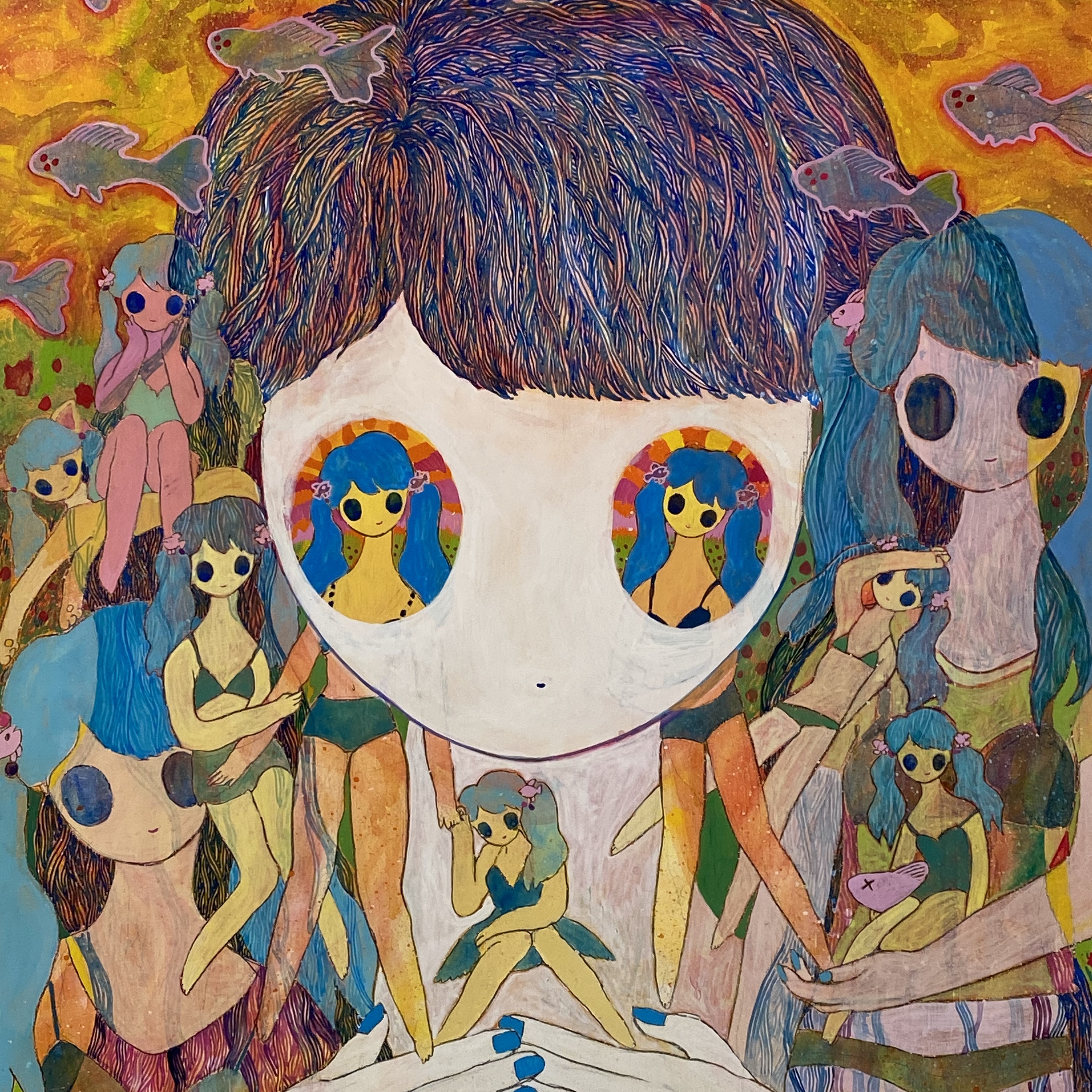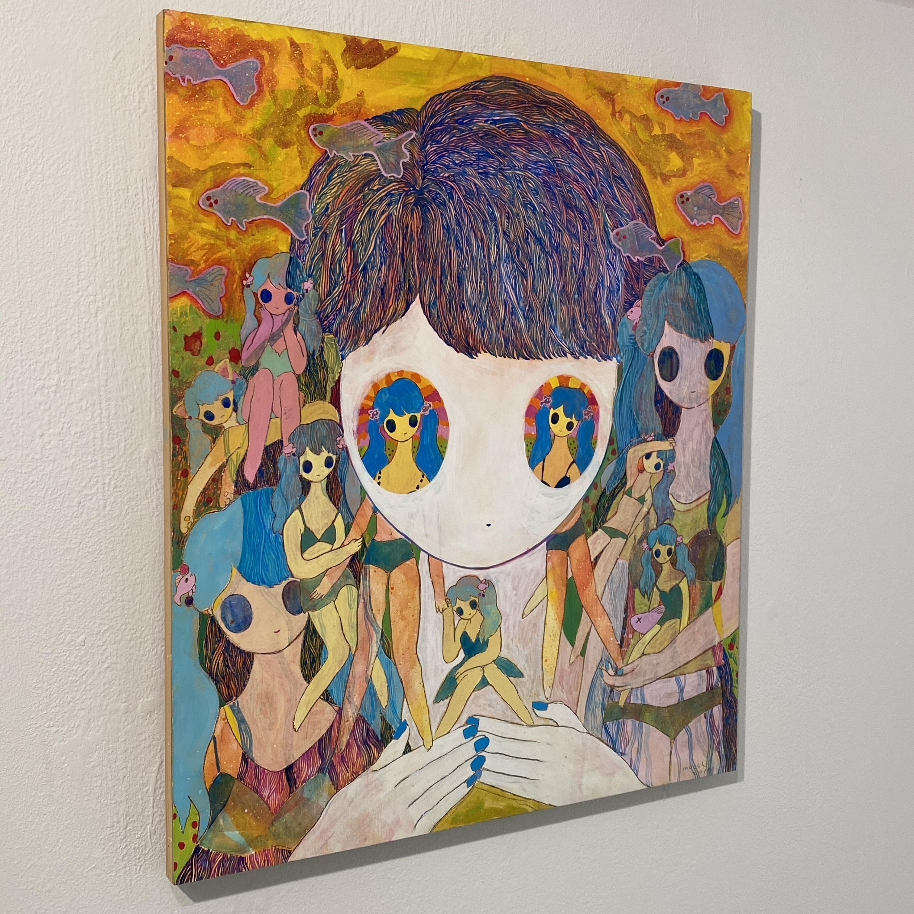 Hiromi is a contemporary Japanese artist based in Yamanashi and Tokyo in Japan. Most of her works are portraits of Japanese girls. Although they are uniquely drawn, her characters might remind you of Modigliani’s portraits and Japanese Modern and also Showa-period animation. Rather than femininity or sexuality, which are popular discussions in today’s art scene, her subjects of those portraits are social matters and problems. Using innocent looking girls as a symbol, she talks about social situations and problems, such as air pollution, which are surrounding her at the present moment. If we look closely at the eyes in these portraits, we will notice the world that has been projected into their eyes. Her unusual style of painting and line drawing with modified shapes of girls are what we believe to be one of the latest in contemporary art.