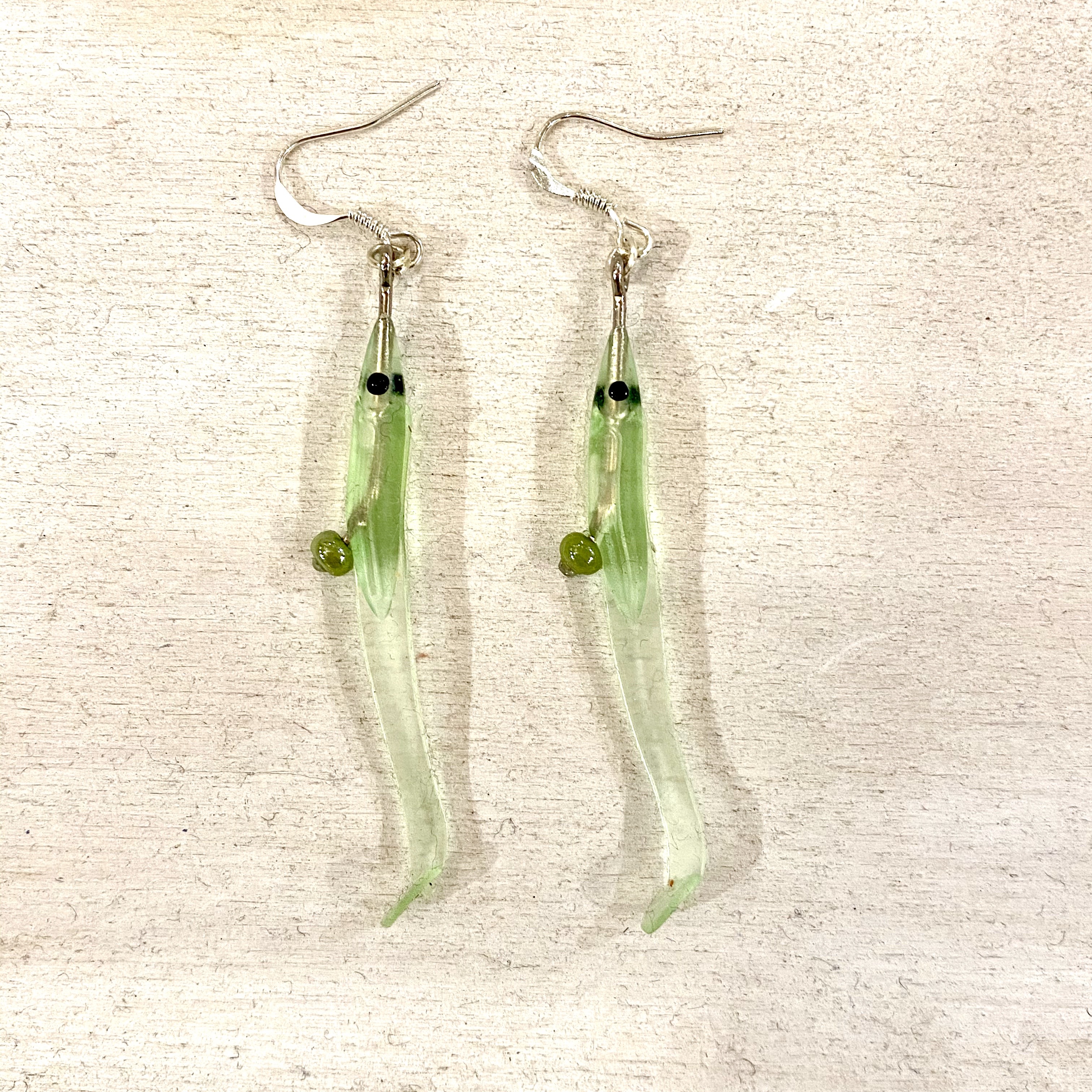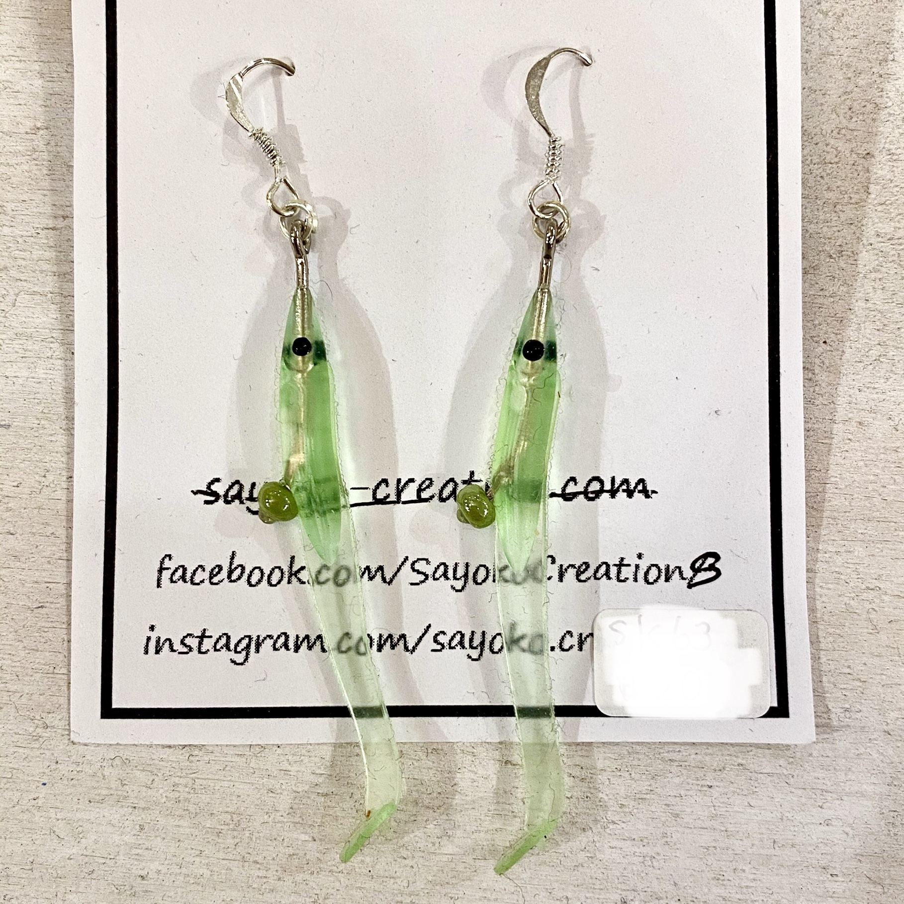 🔴 SOLD Luminous Fish Lure Earrings - Handmade by Sayoko Creation
