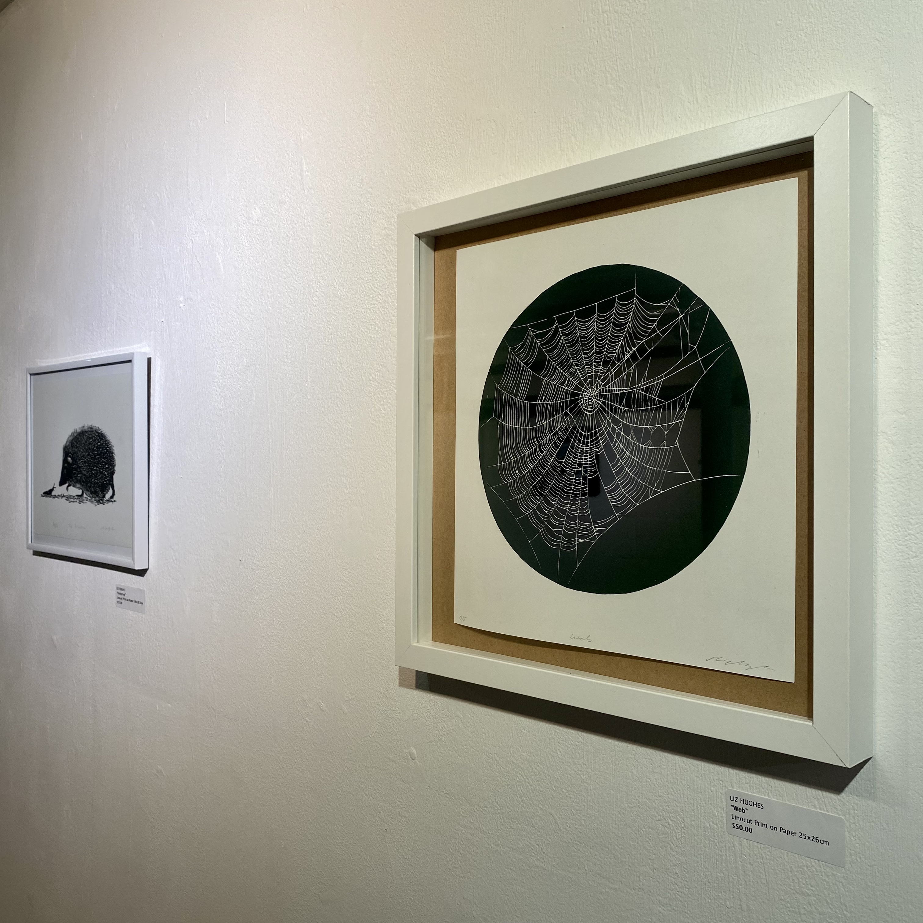 "WEB" Original Linocut Print by Liz Hughes -Framed-