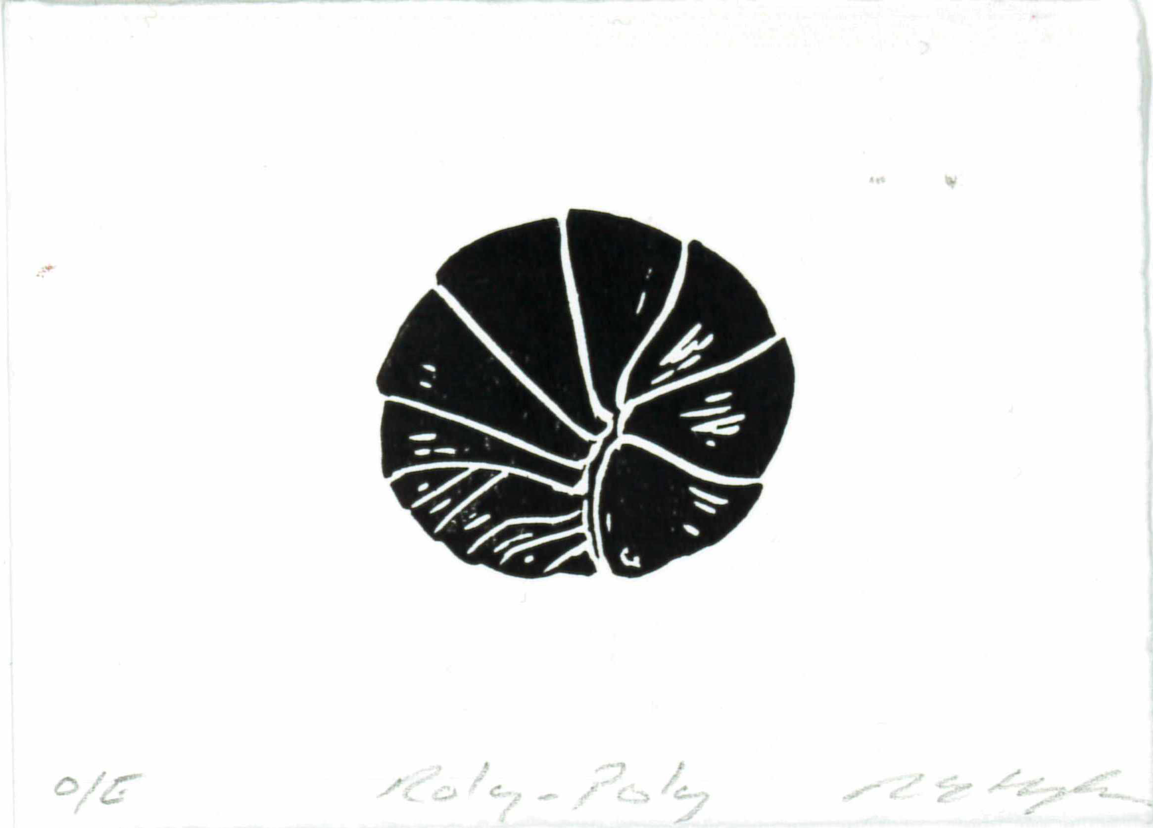 🔴 SOLD "Roly-Poly" Original Linocut Print by Liz Hughes