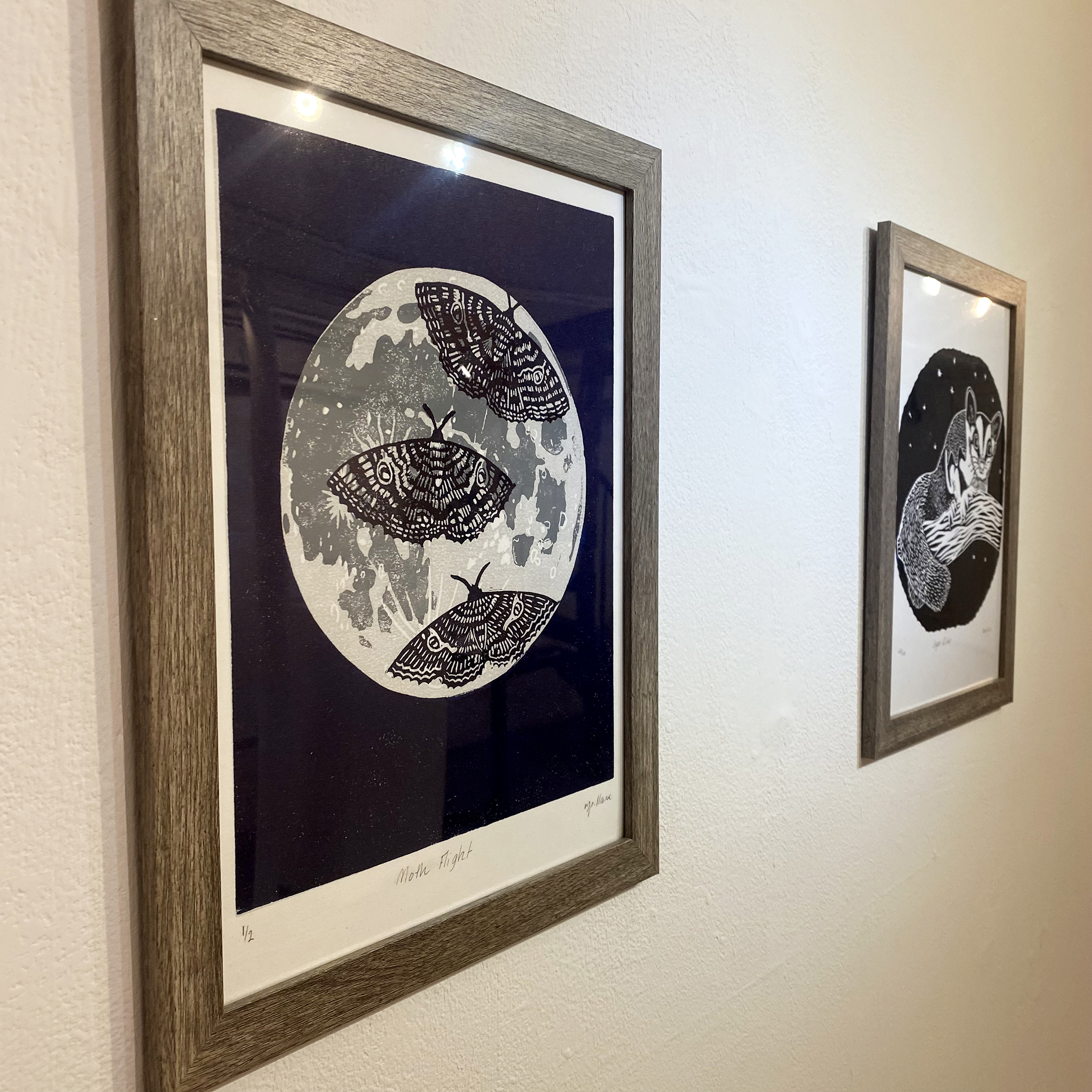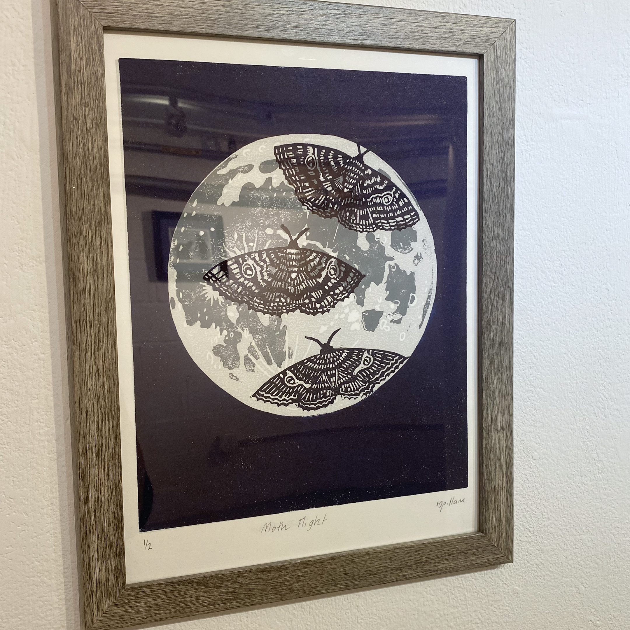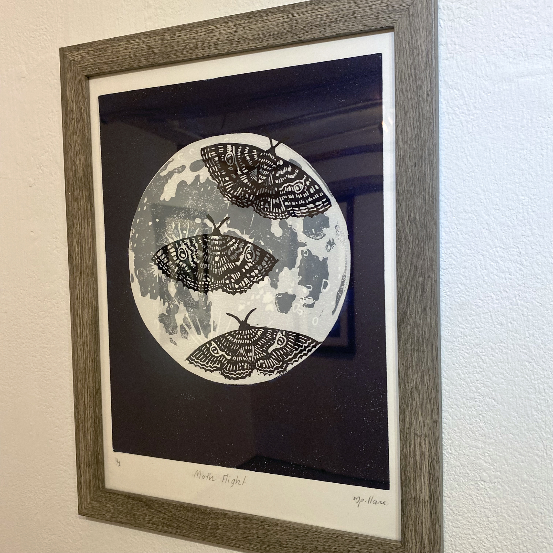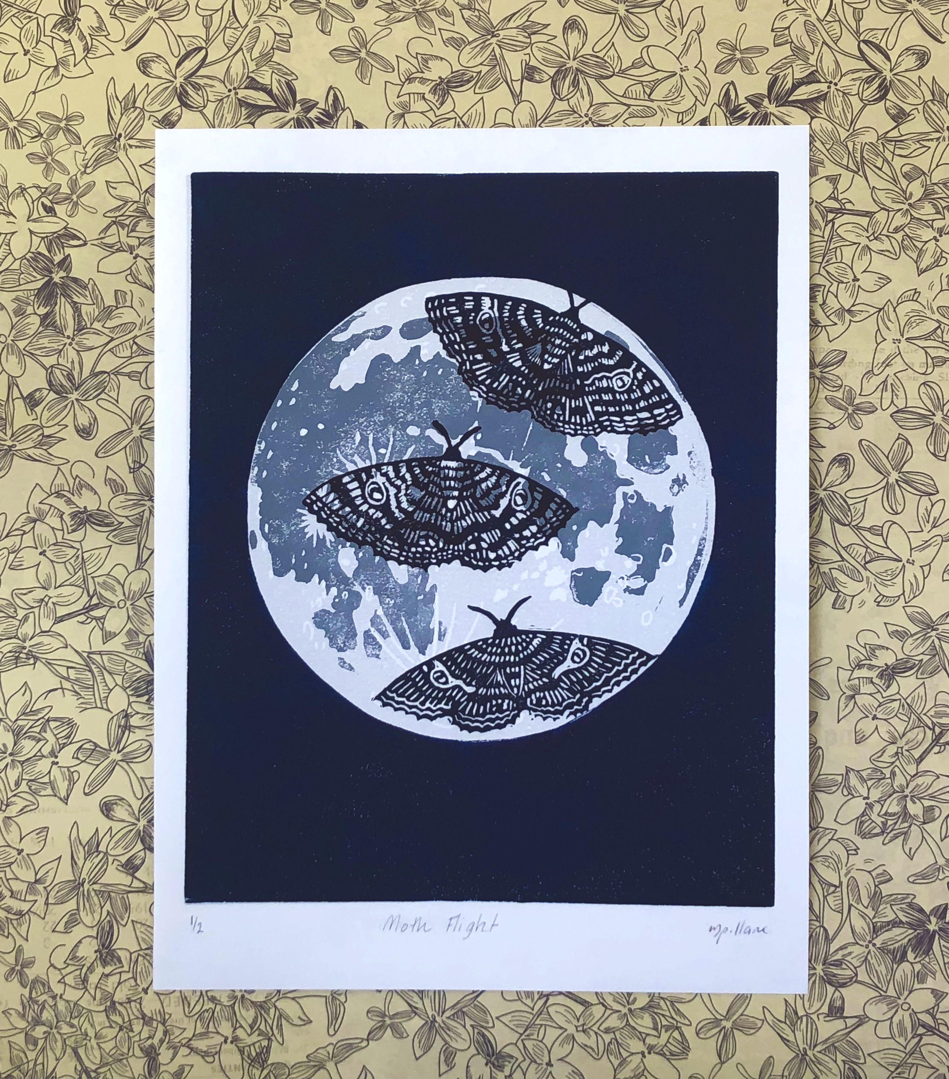🔴SOLD "Moth Flight" Original Linocut Print by Nicole Spillane