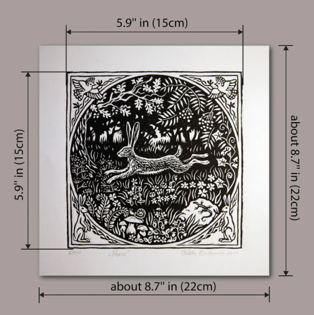 Original Linocut Print on a 22cm (8.7") square Paper, In a 12" Square Frame (please see pictures)