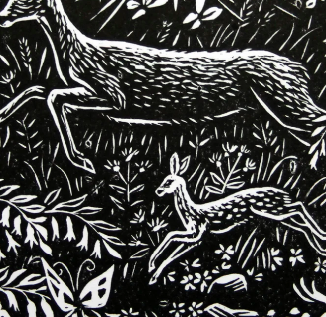 🔴 SOLD"Deer Mama 2019" Original Linocut Print by Valdis Baškirovs