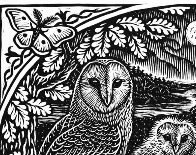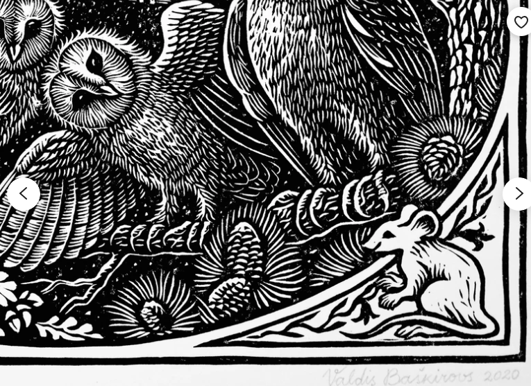 🔴 SOLD "Owls" 2020 Original Linocut Print by Valdis Baškirovs