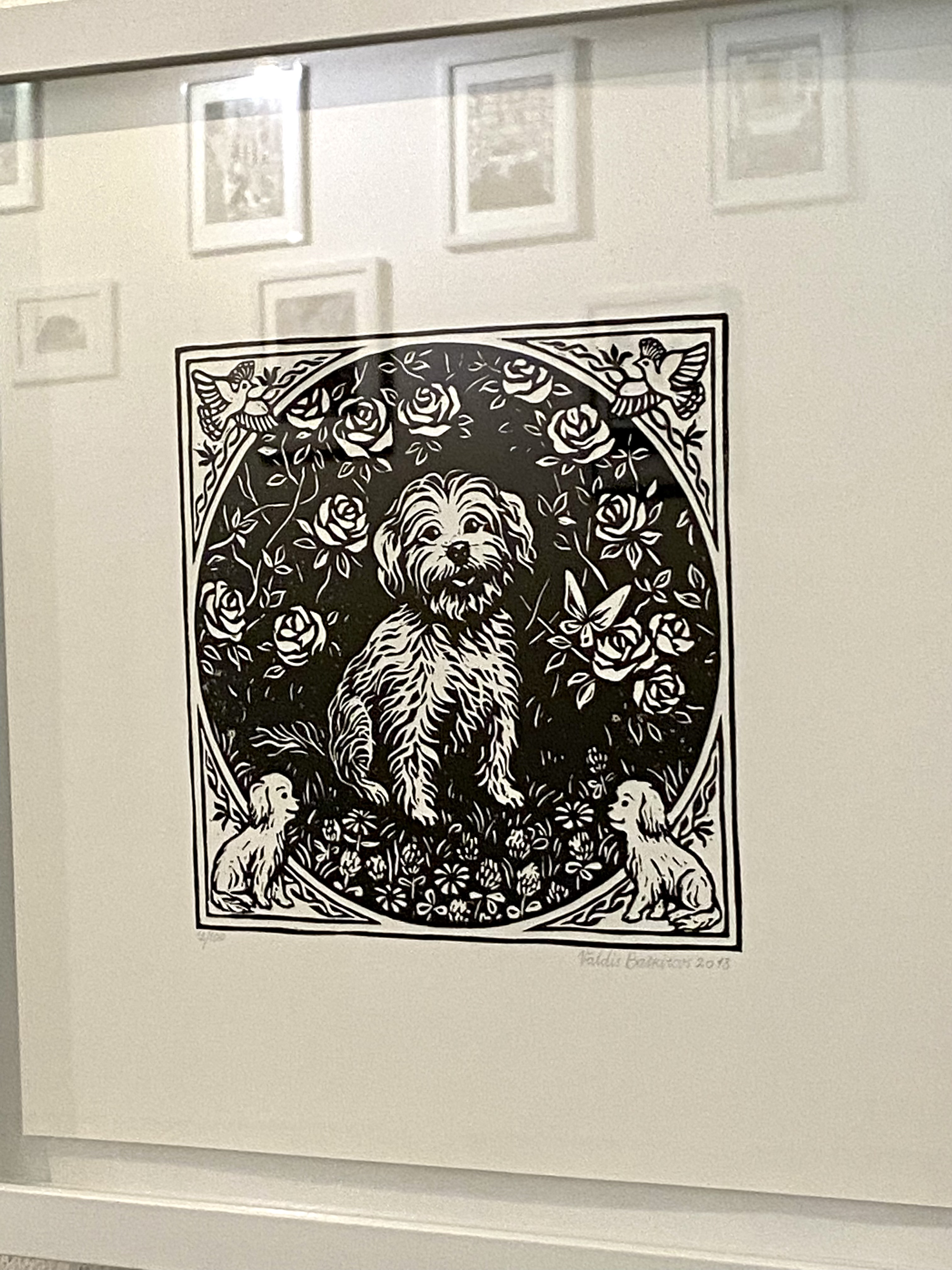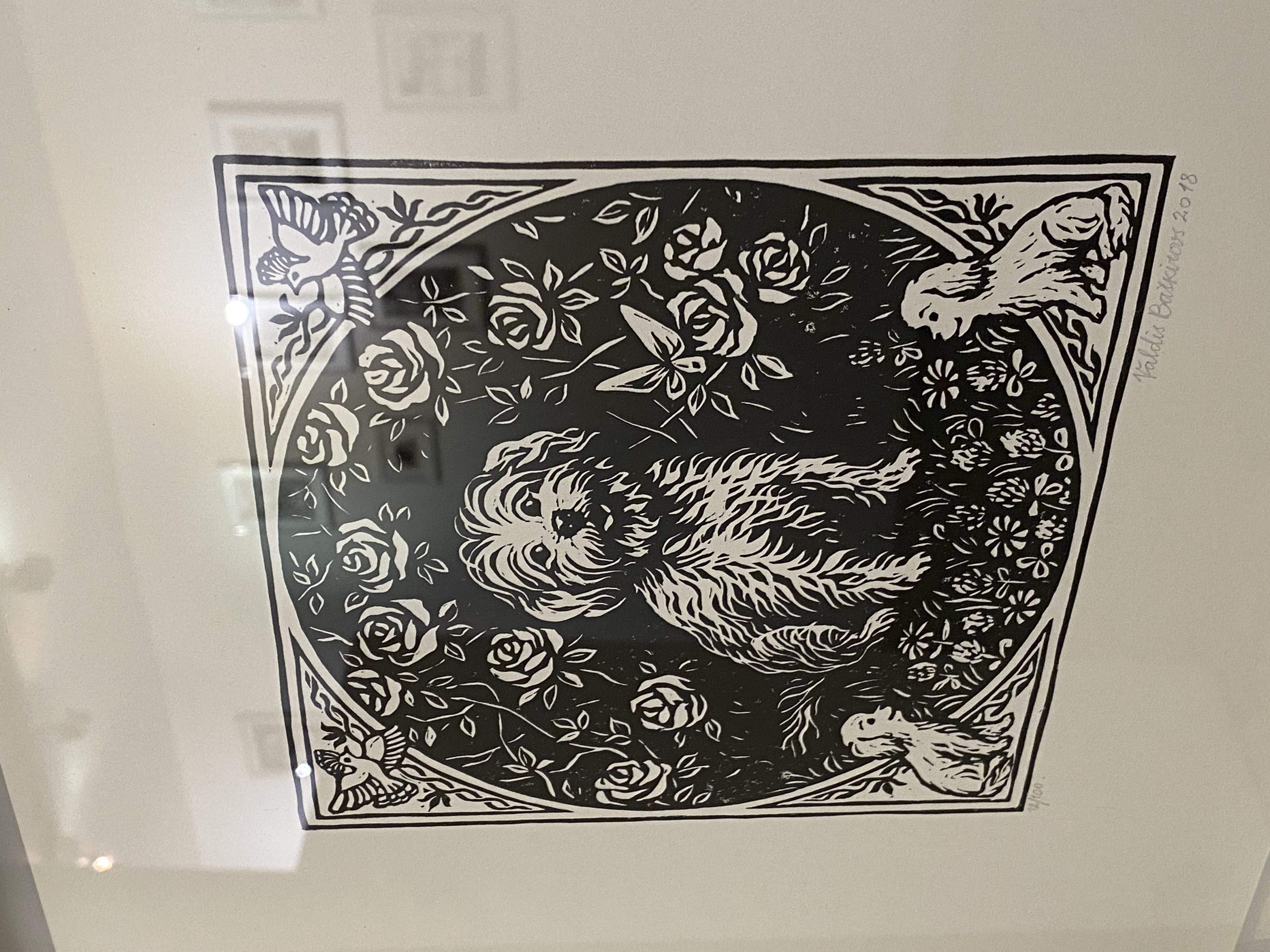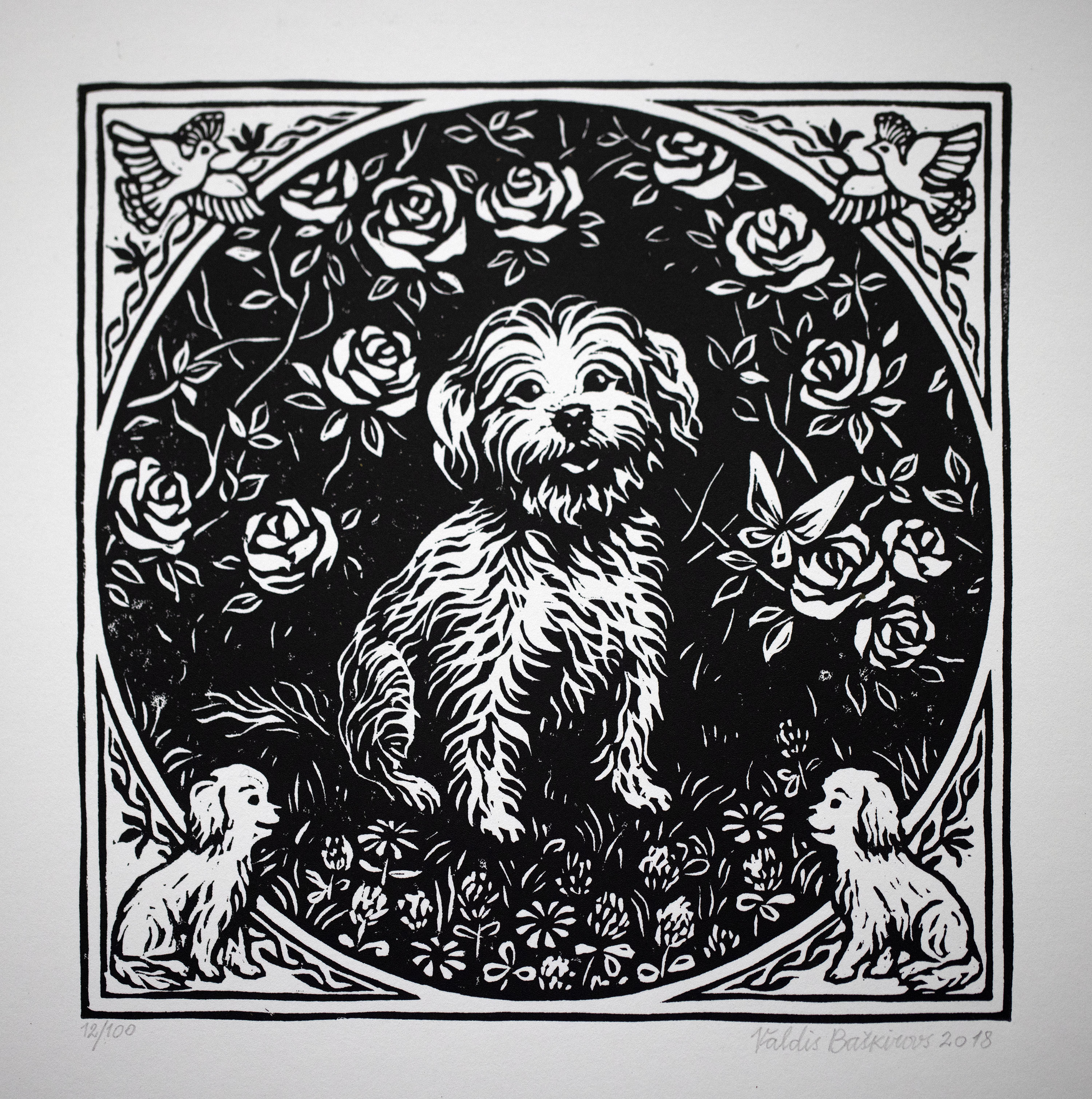 🔴 SOLD "Bichon" 2018" Original Linocut Print by Valdis Baškirovs