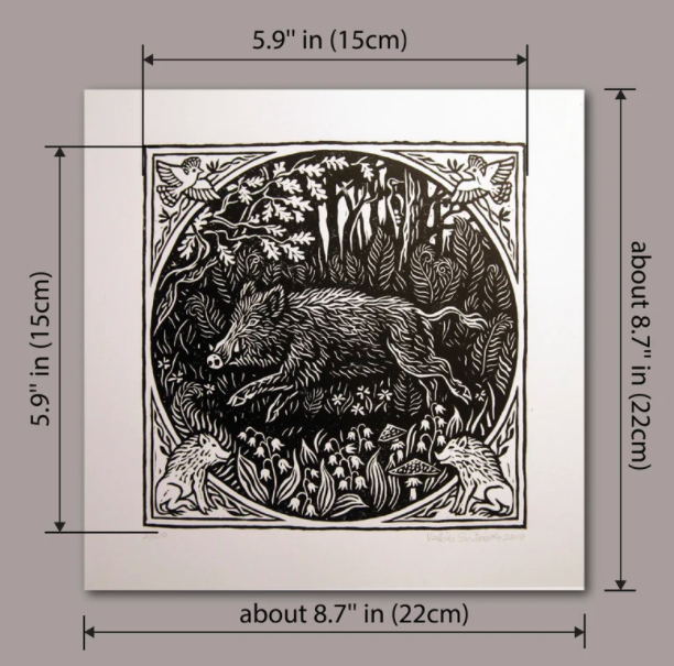 Original Linocut Print on a 22cm (8.7") square Paper, In a 12" Square Frame (please see pictures)