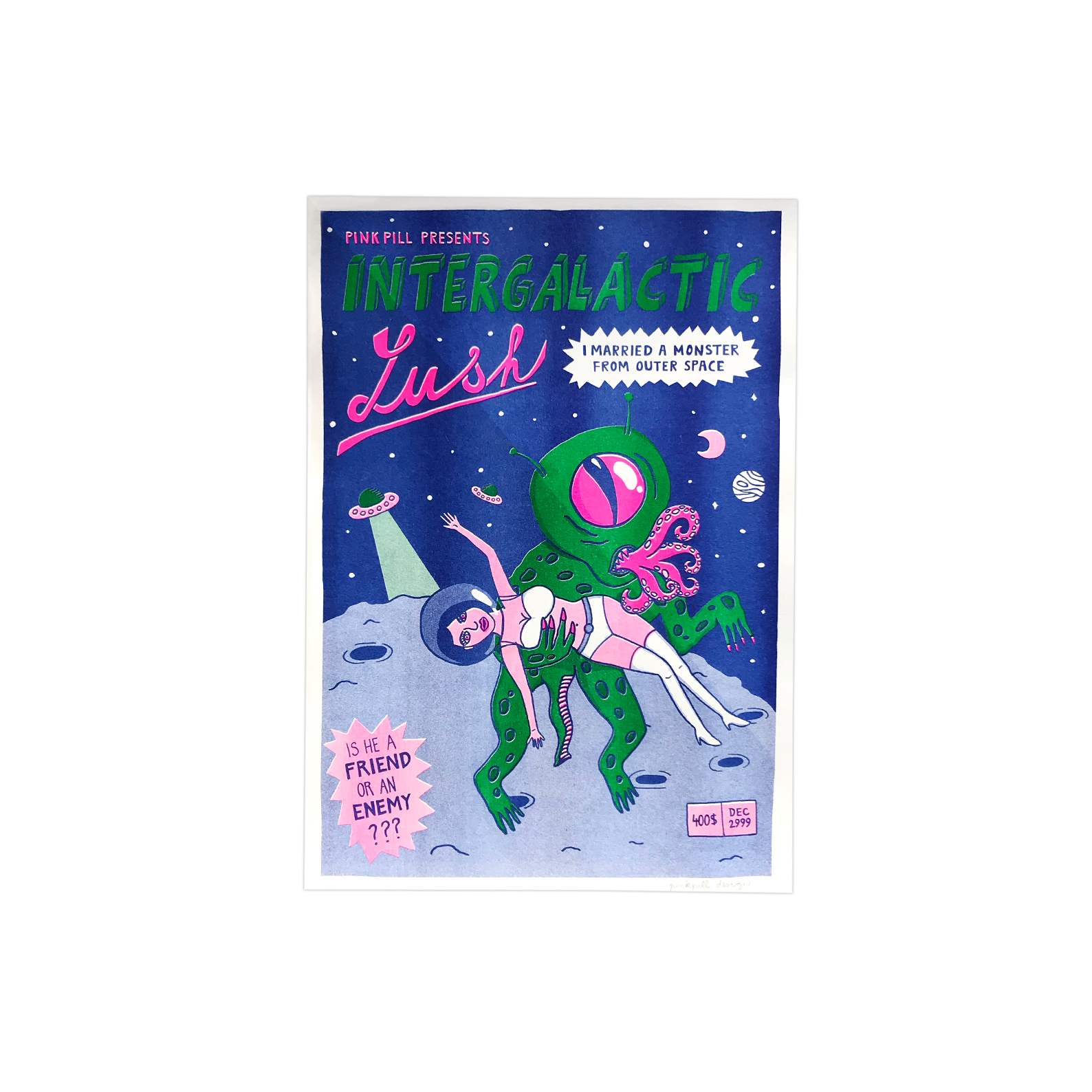 🔴 SOLD "INTERGALATIC (27/46)" Risograph Print by Pinkpill Design