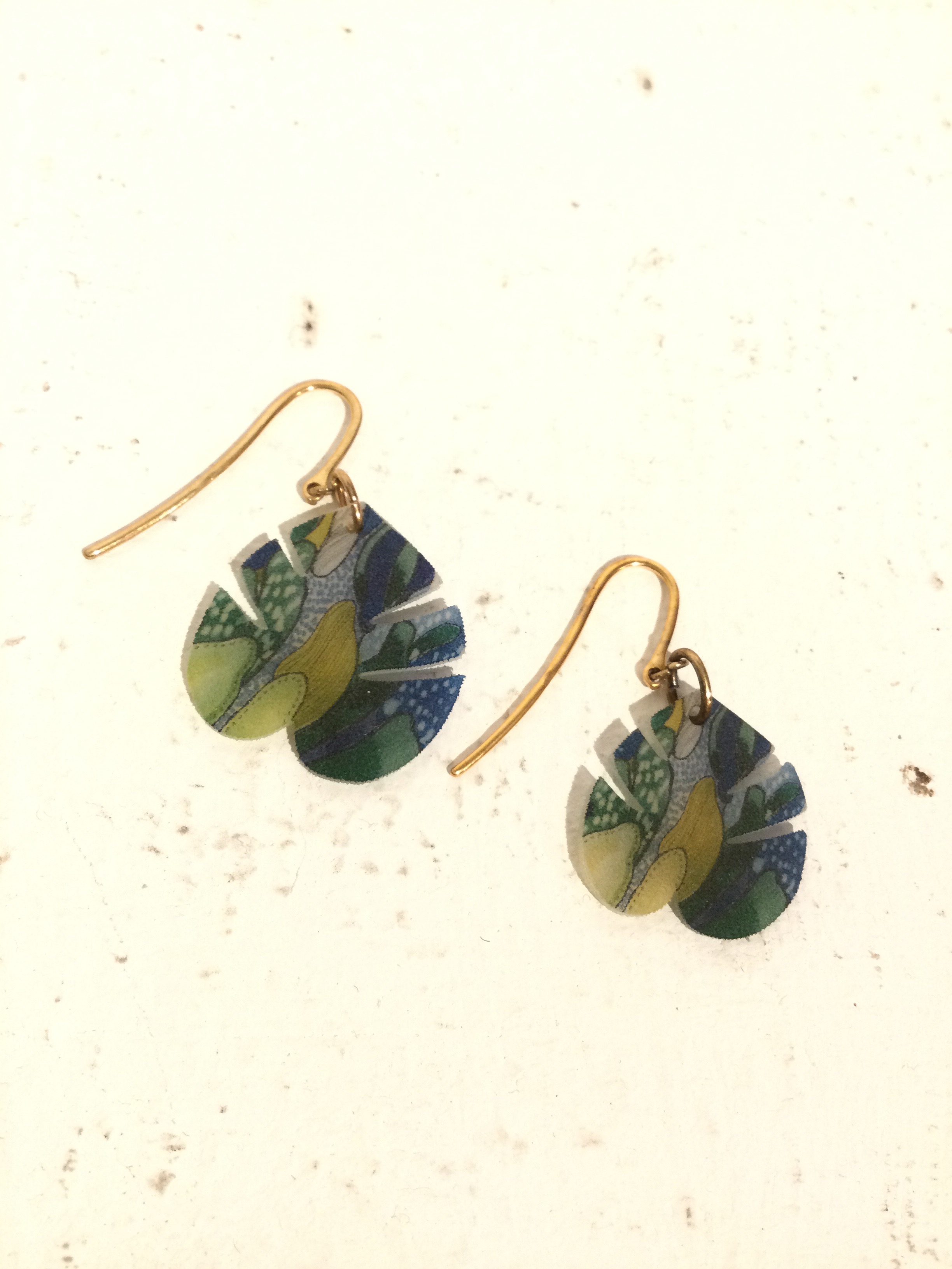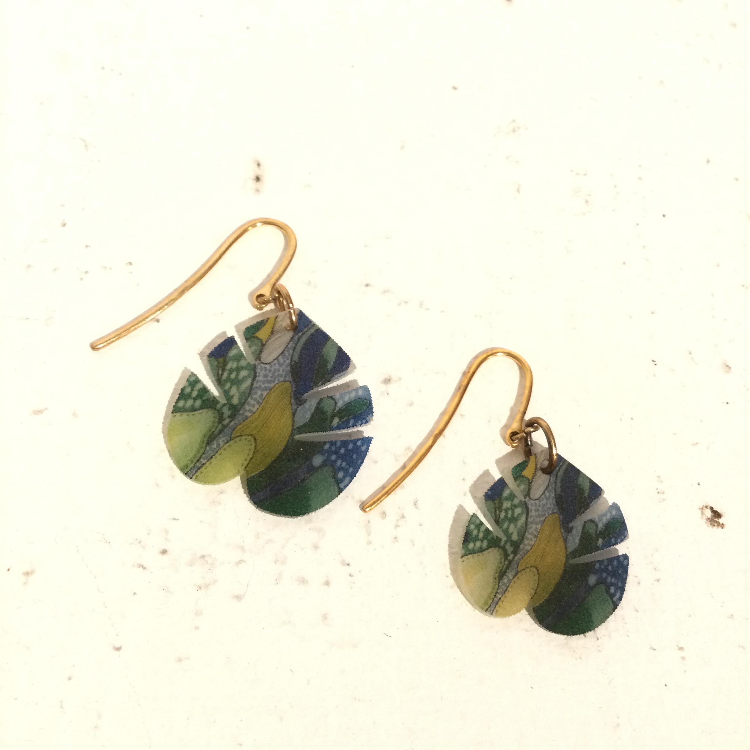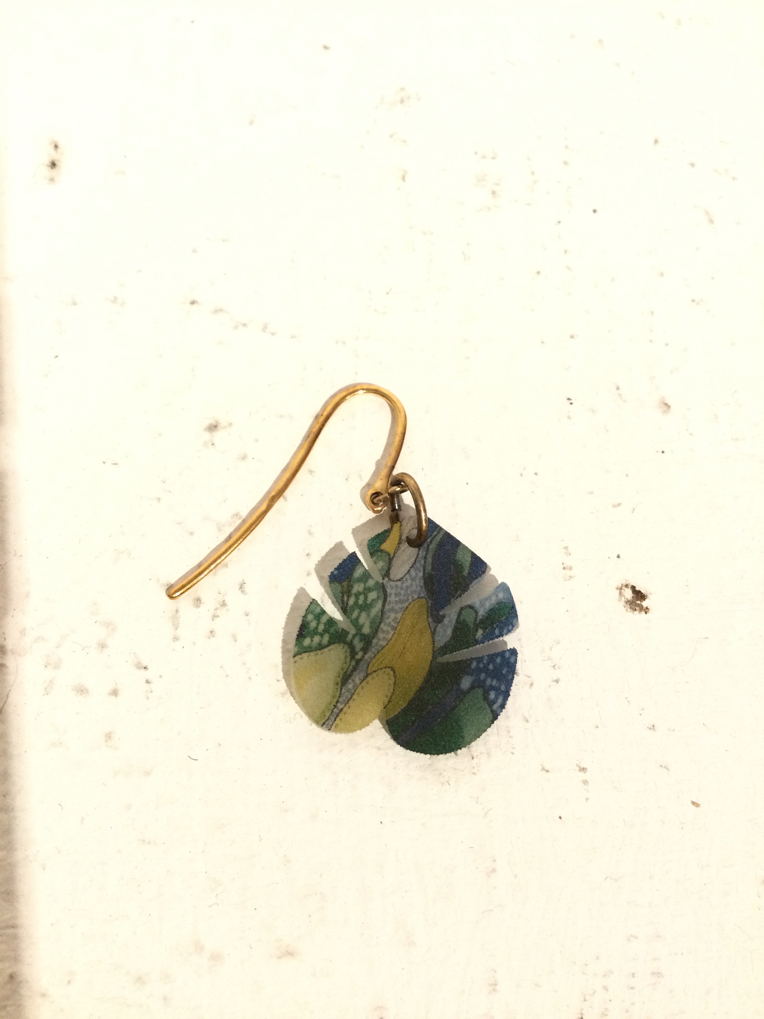 🔴 SOLD Handmade Earring: Leaf with Yellow Dot MM7-3