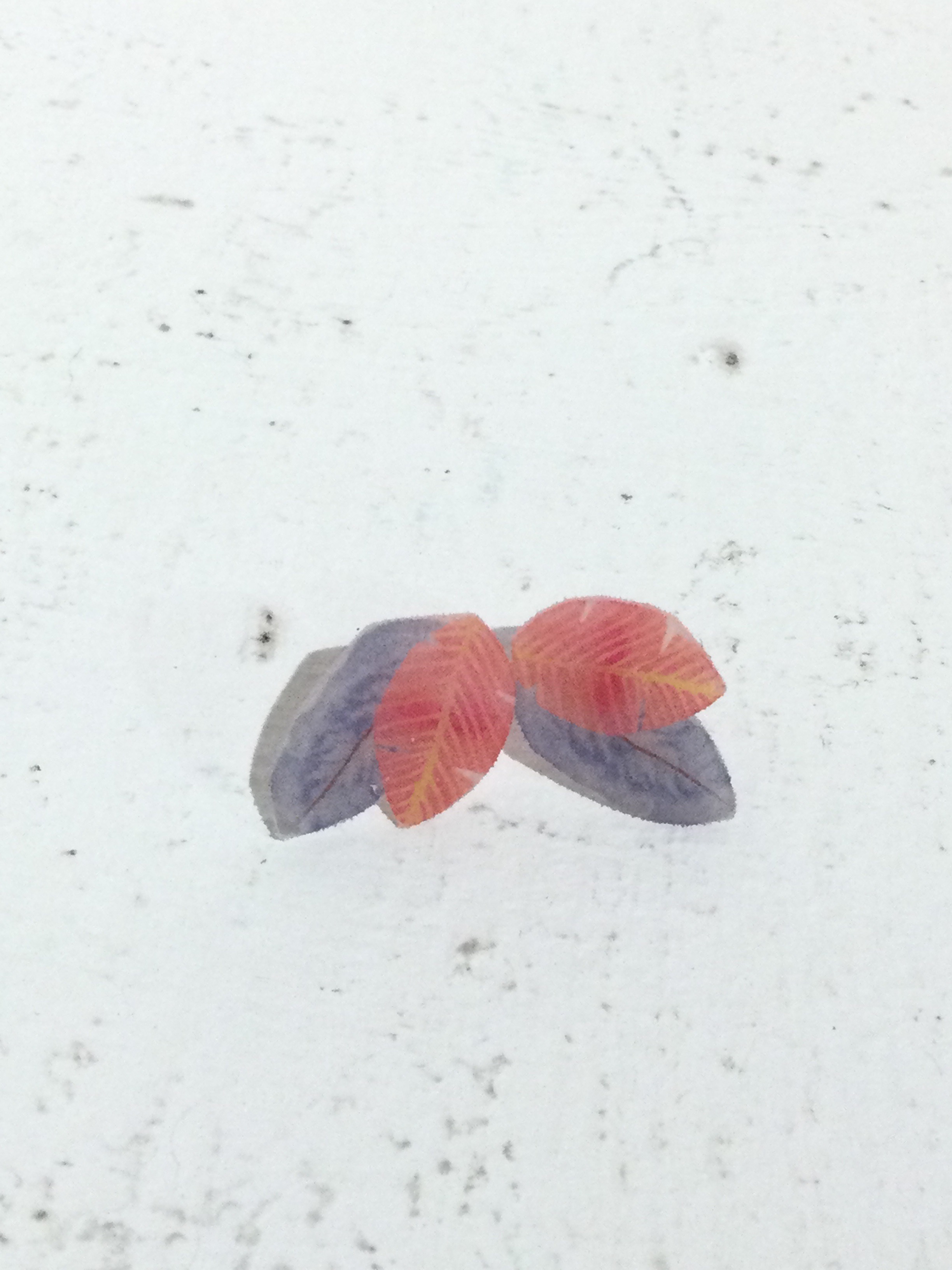 🔴 SOLD Handmade Earring: Leaf with Yellow Dot MM7-3