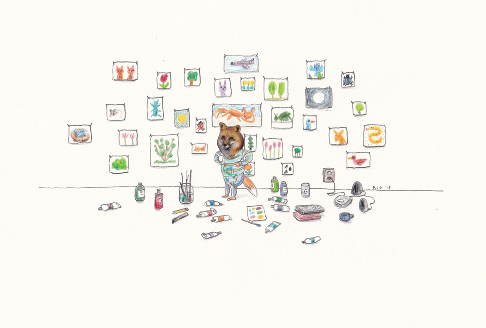 A Fine Art Print of original Illustration Collage "Fox Artist" by Robbie Guertin.