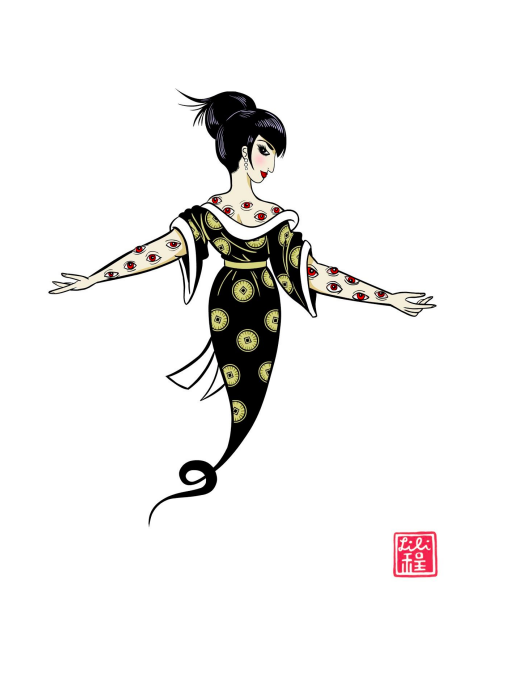 This is original, limited edition art print "Dodomeki" by Lili Chin for AG Gallery's exhibition "Yokai Neighbors".