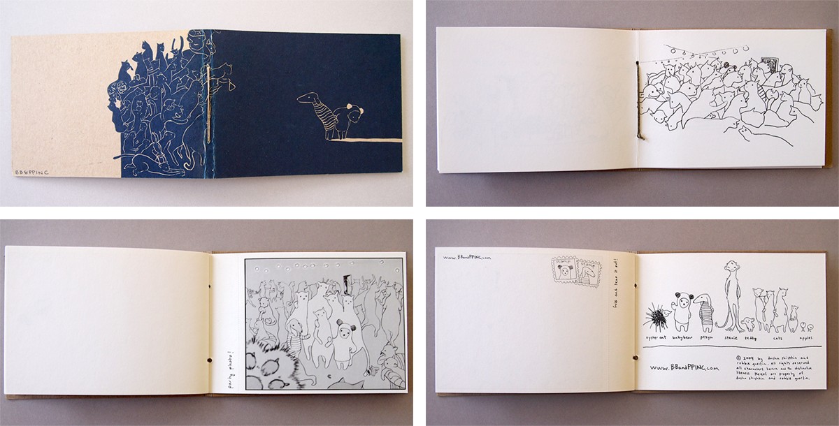 "BB and Pezya come across some unruly birds in this full color book. There are 18 pages of fun, and there’s even cut out paper puppets! Each cover is a hand printed linocut, and each book is assembled by hand. "-BBPP Inc.