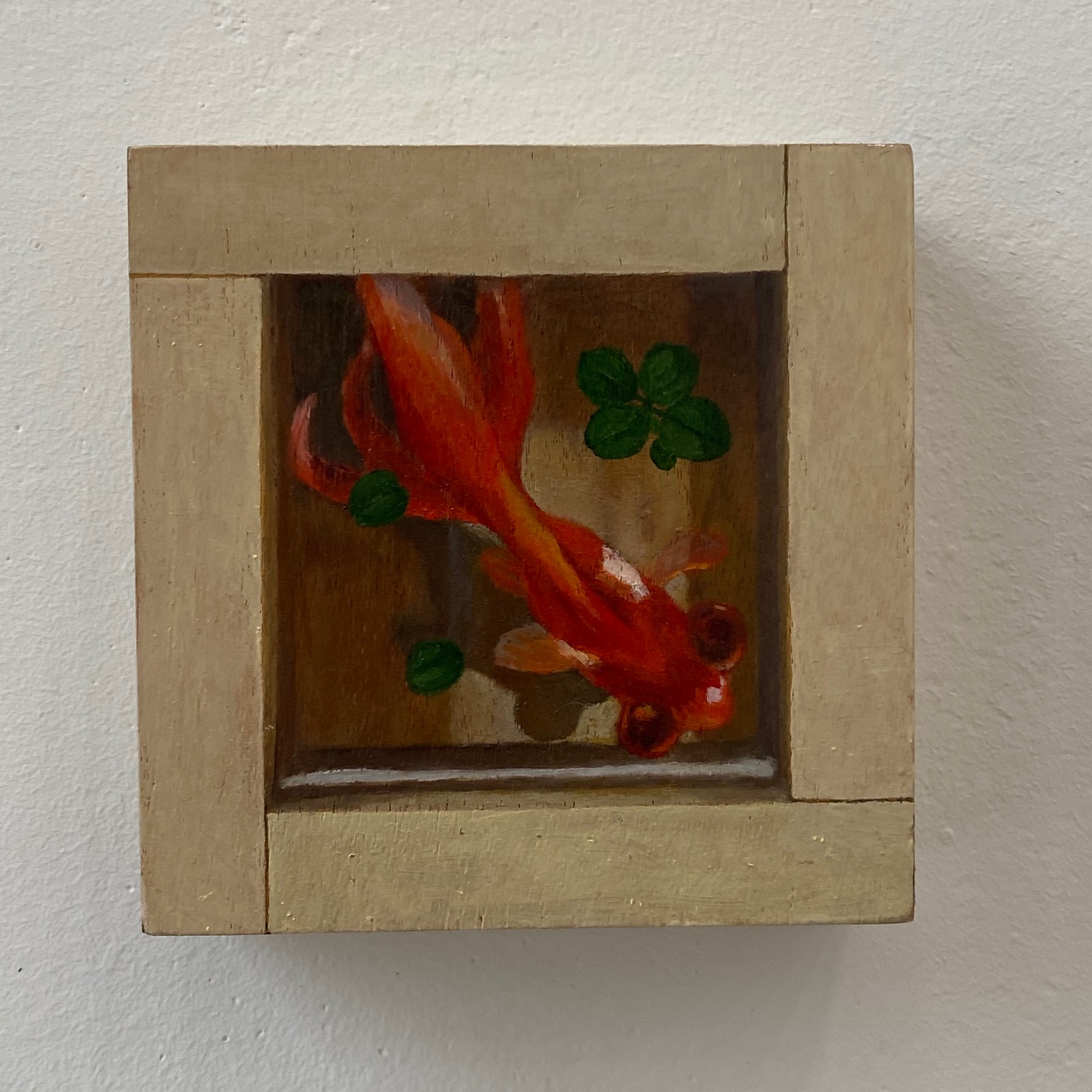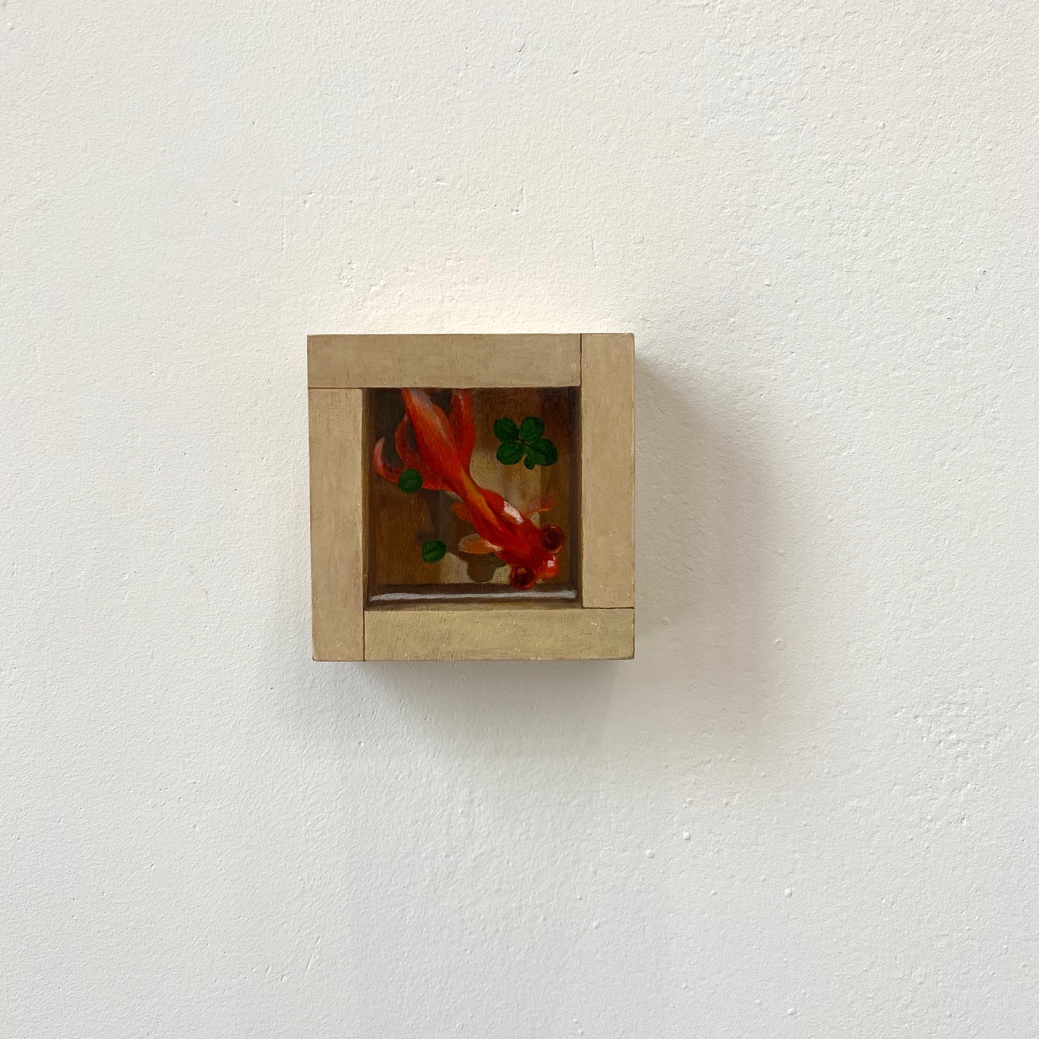 "Every caring goldfishes owner cleans their fish tank often so usually their goldfishes have temporary houses. In Japan it's usually everyday housewares like bowls, and cups. In this case, Masu, a Japanese wooden cubic measure container." -Natsumi Goldfish