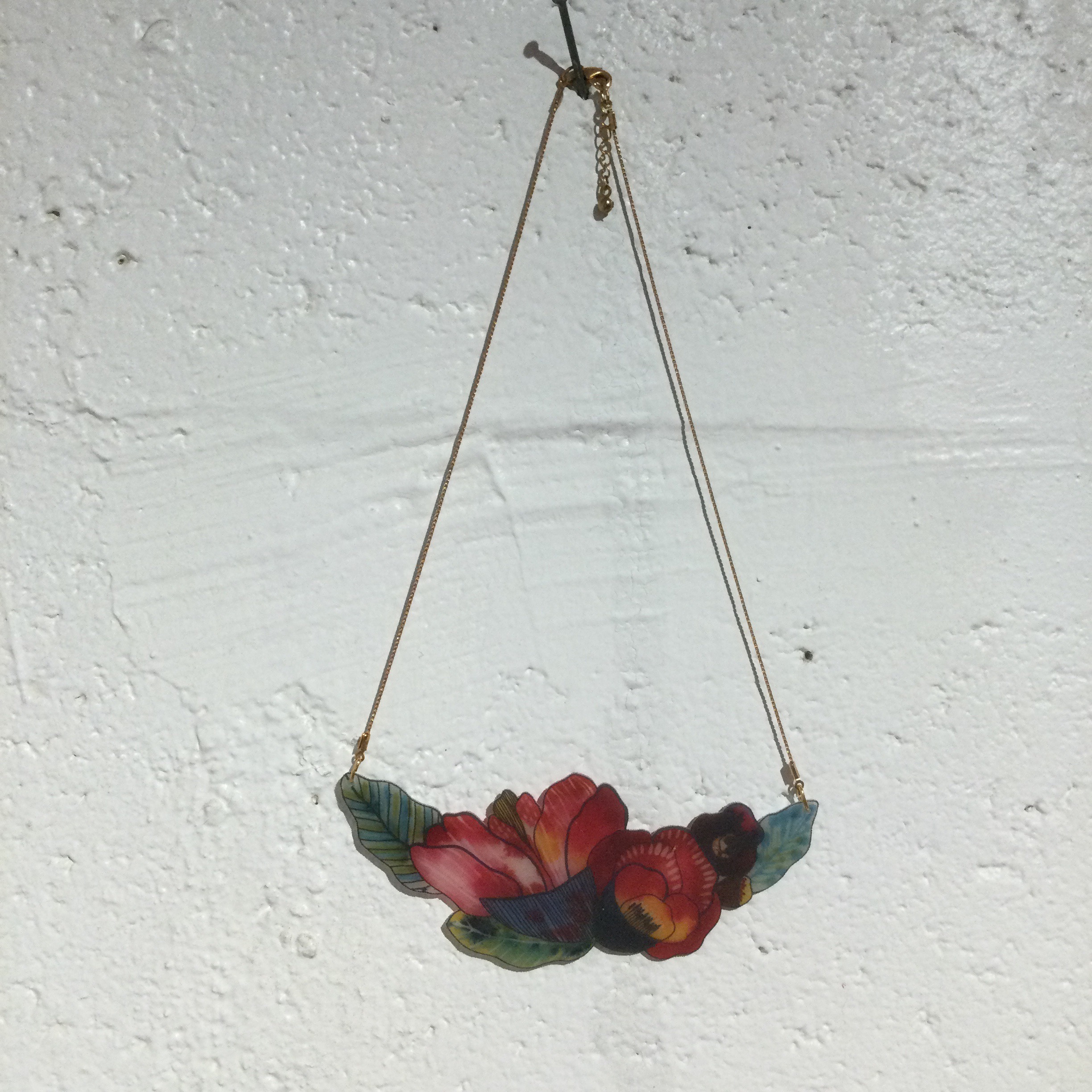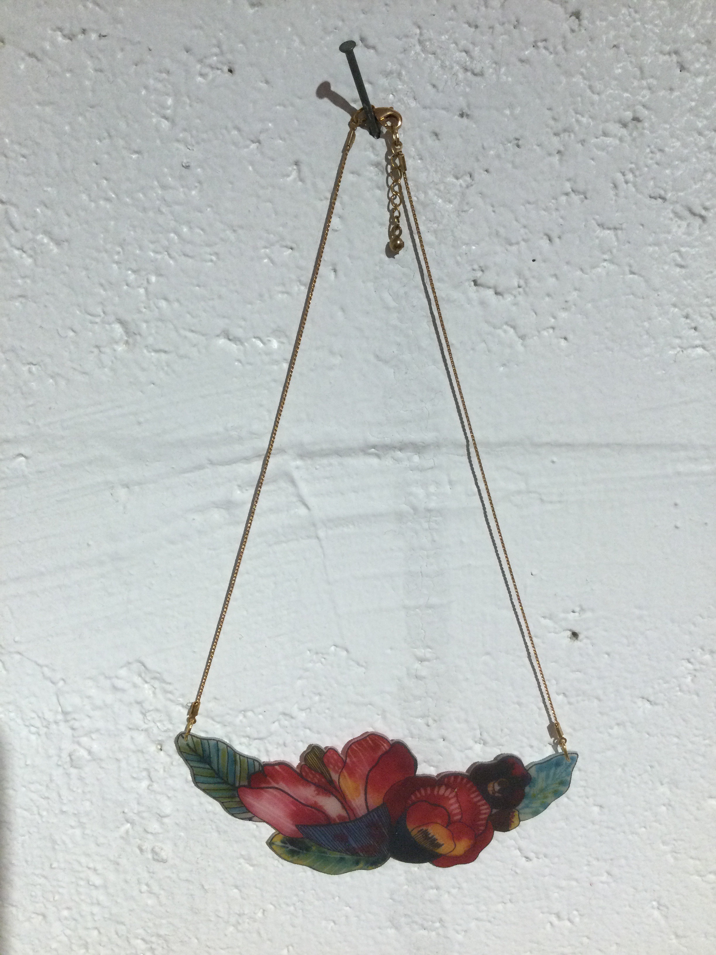 Handmade, Original Botanical painting necklace by Maria Montiel.