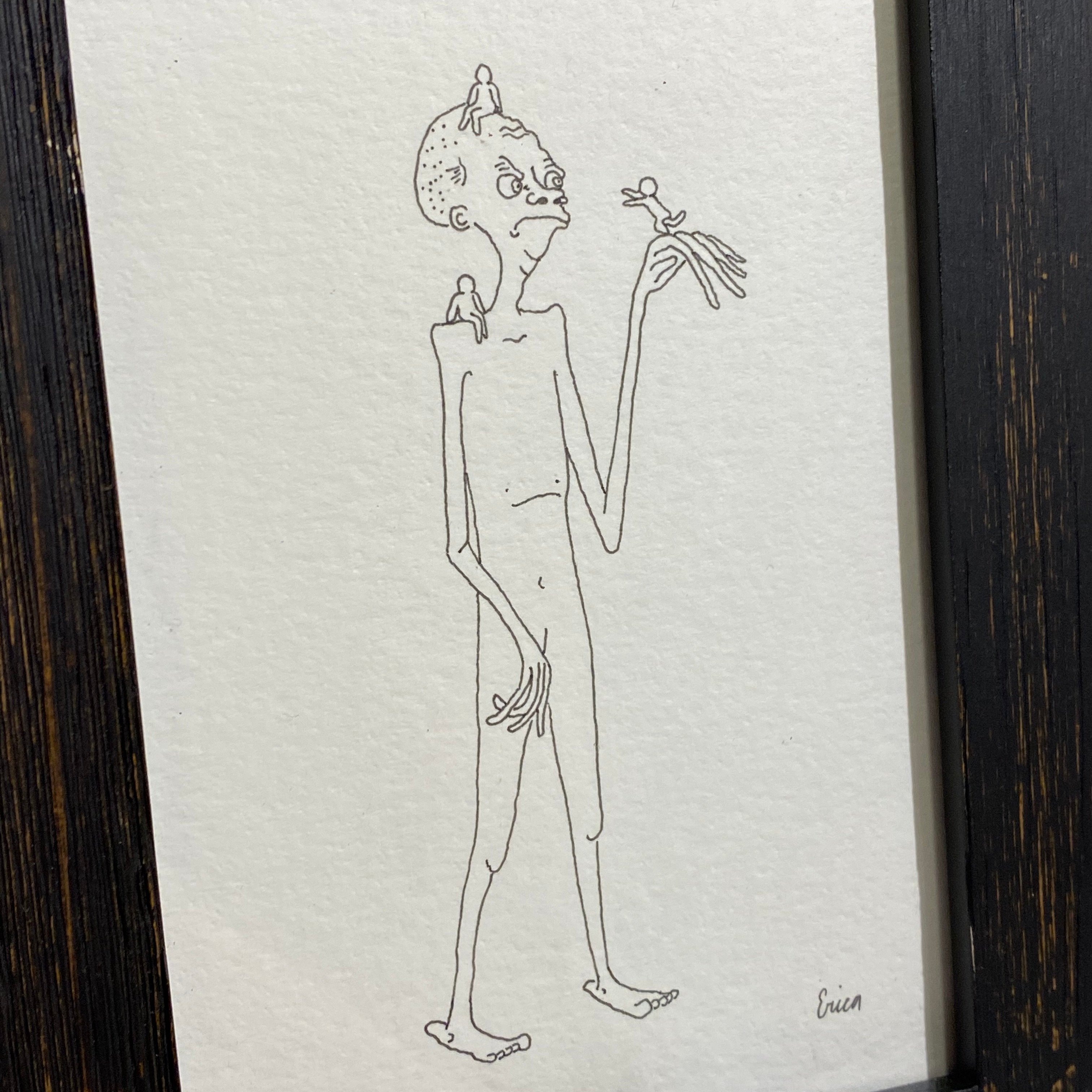 🔴 SOLD "Untitled (Guy with three tiny people)" by Erica Linnemann