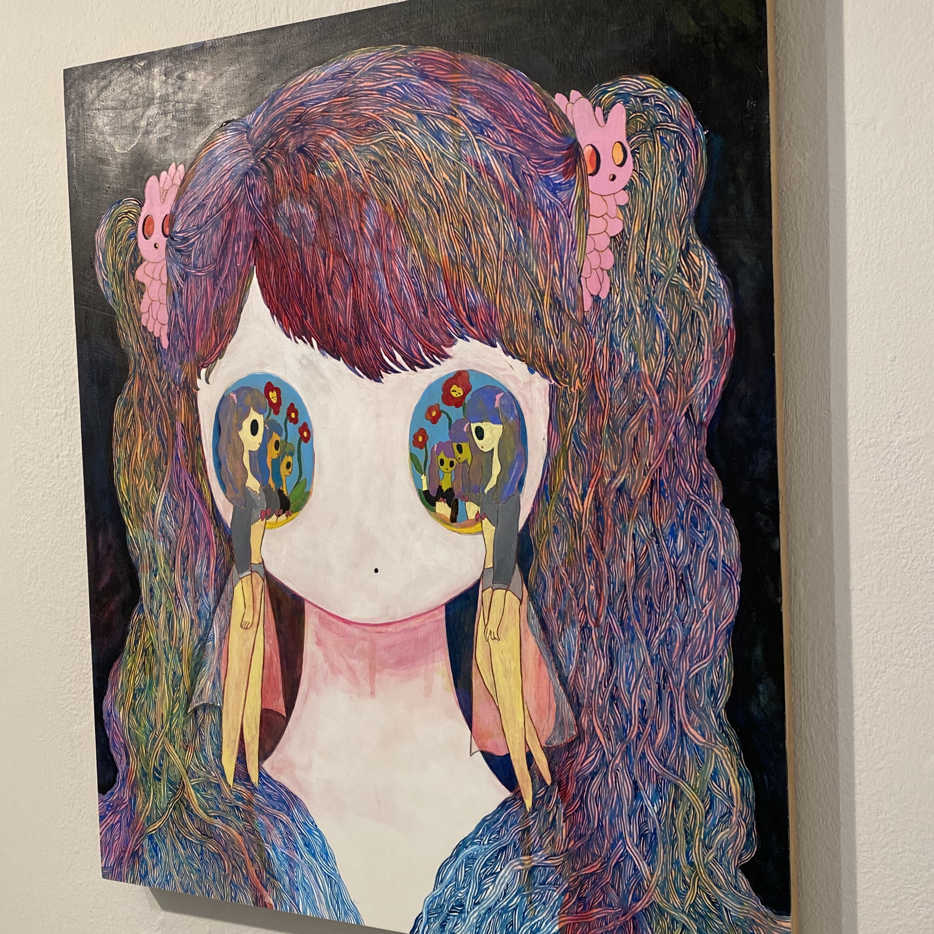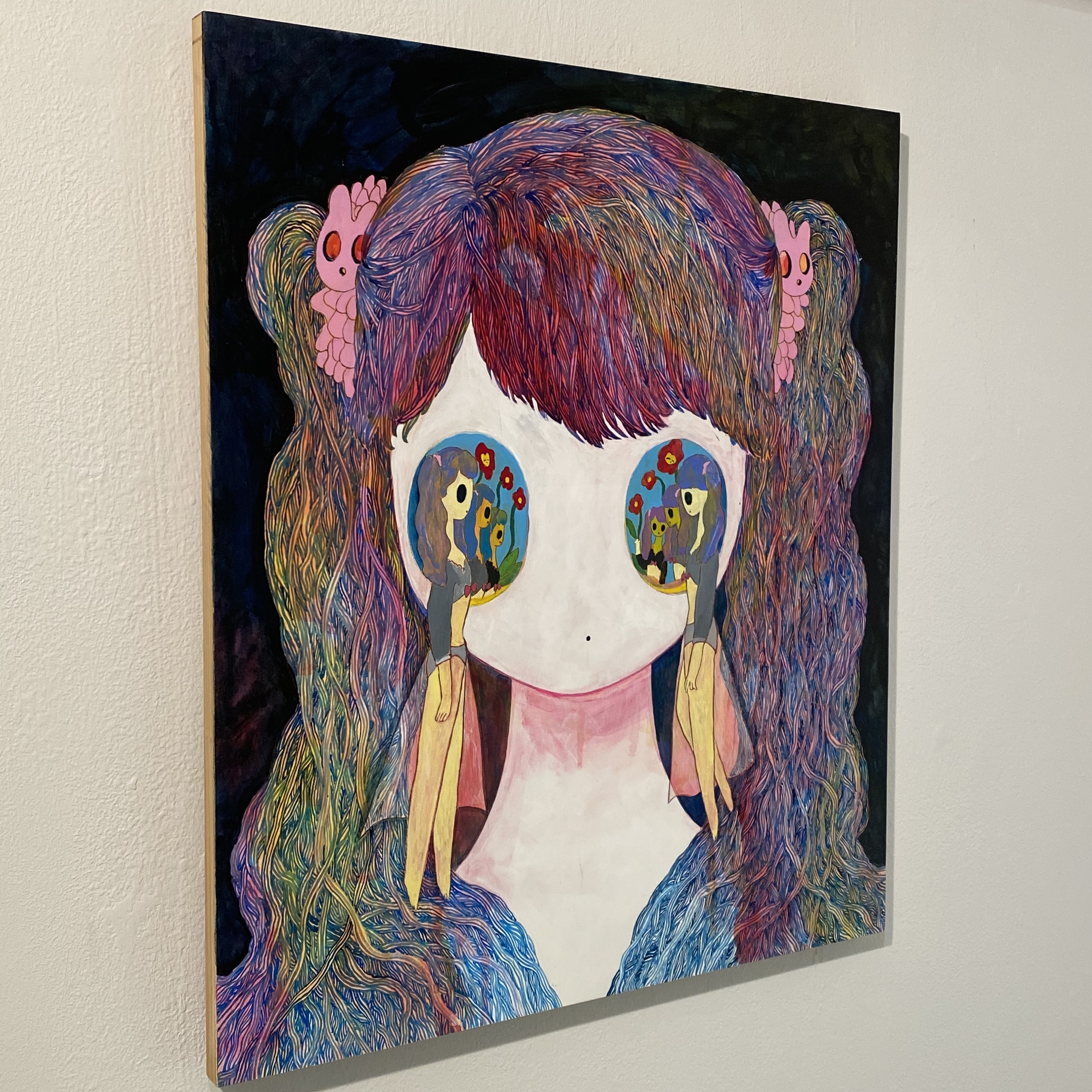 Hiromi is a contemporary Japanese artist based in Yamanashi and Tokyo in Japan. Most of her works are portraits of Japanese girls. Although they are uniquely drawn, her characters might remind you of Modigliani’s portraits and Japanese Modern and also Showa-period animation. Rather than femininity or sexuality, which are popular discussions in today’s art scene, her subjects of those portraits are social matters and problems. Using innocent looking girls as a symbol, she talks about social situations and problems, such as air pollution, which are surrounding her at the present moment. If we look closely at the eyes in these portraits, we will notice the world that has been projected into their eyes. Her unusual style of painting and line drawing with modified shapes of girls are what we believe to be one of the latest in contemporary art.