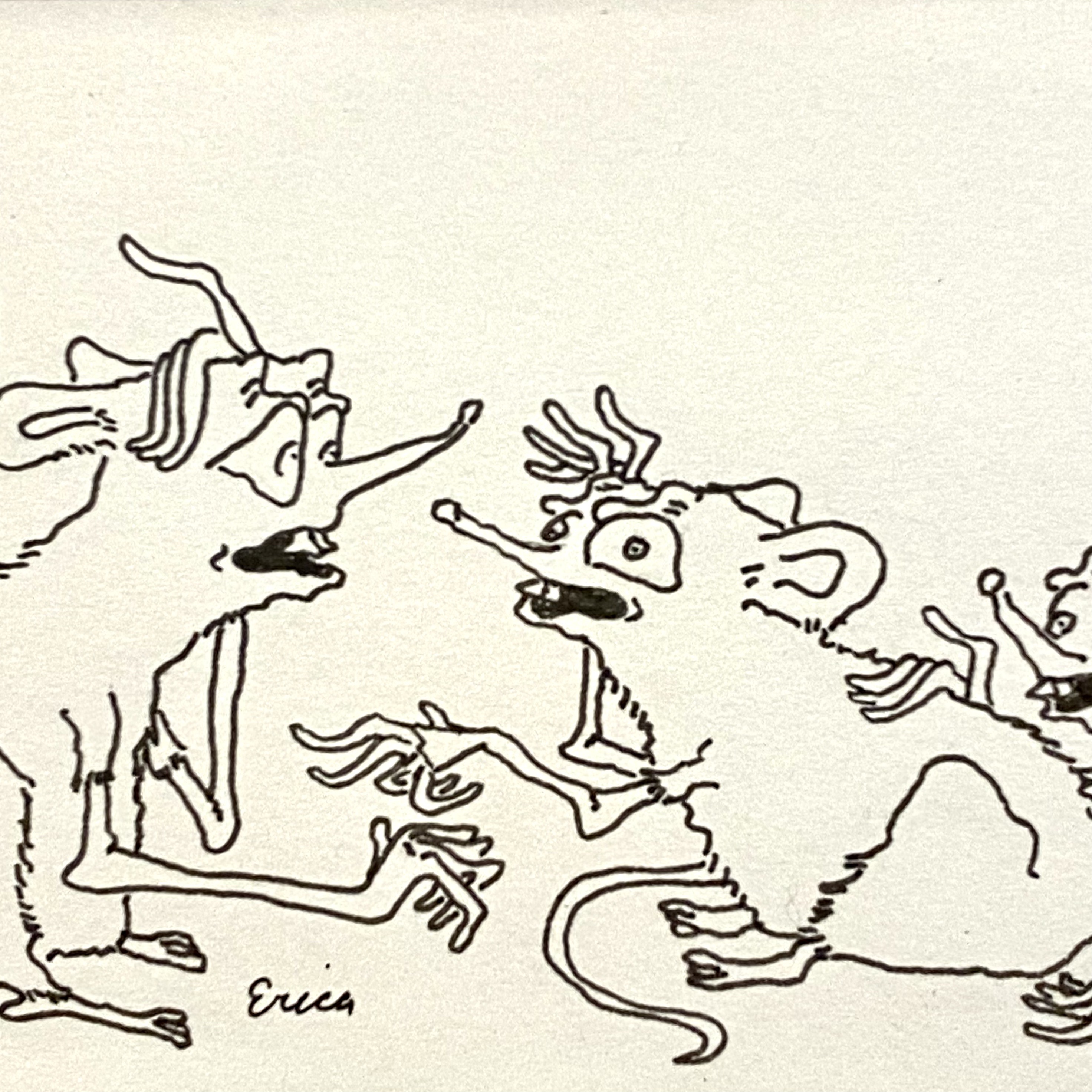 Size: Drawing in approximate 3 3/8" x 4 3/8" vintage Frame
