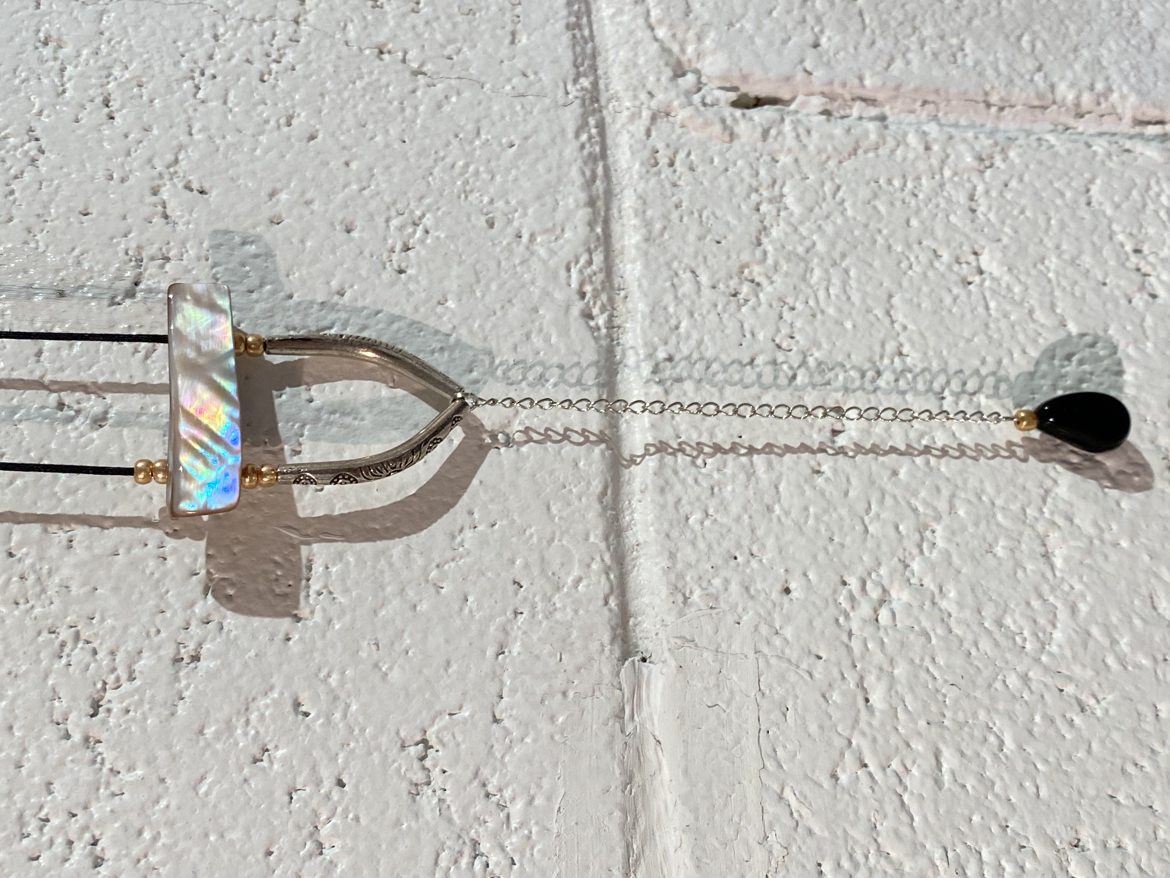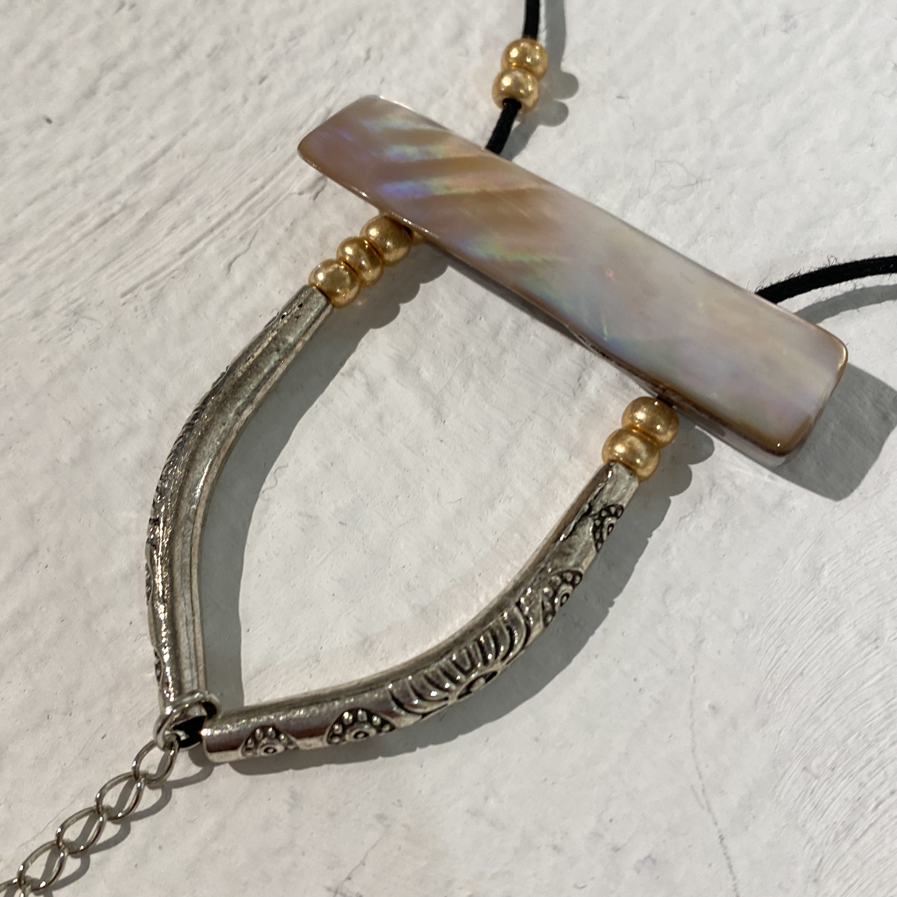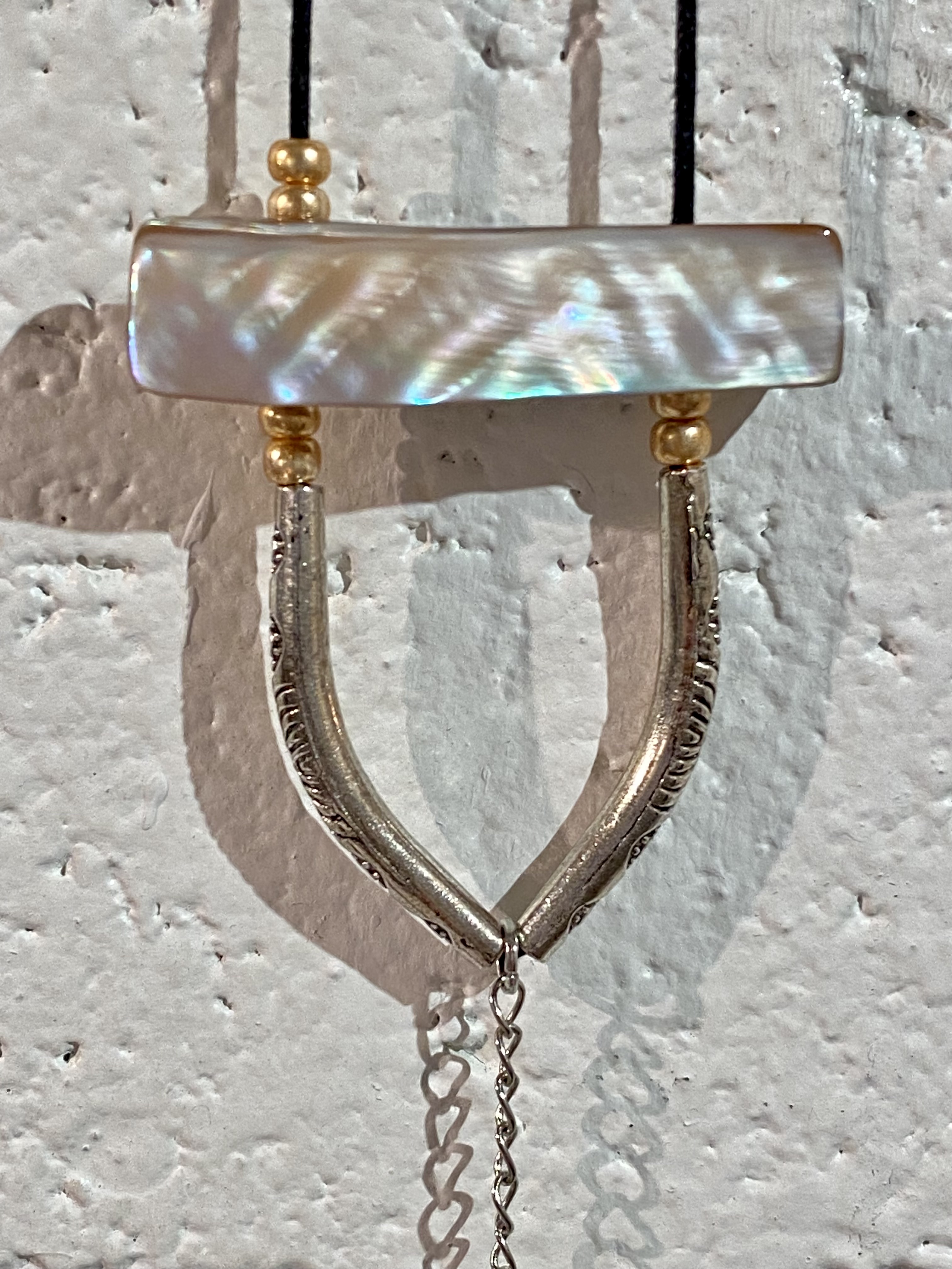 Material: Mother of pearl and beads, glass and silver color tubes.