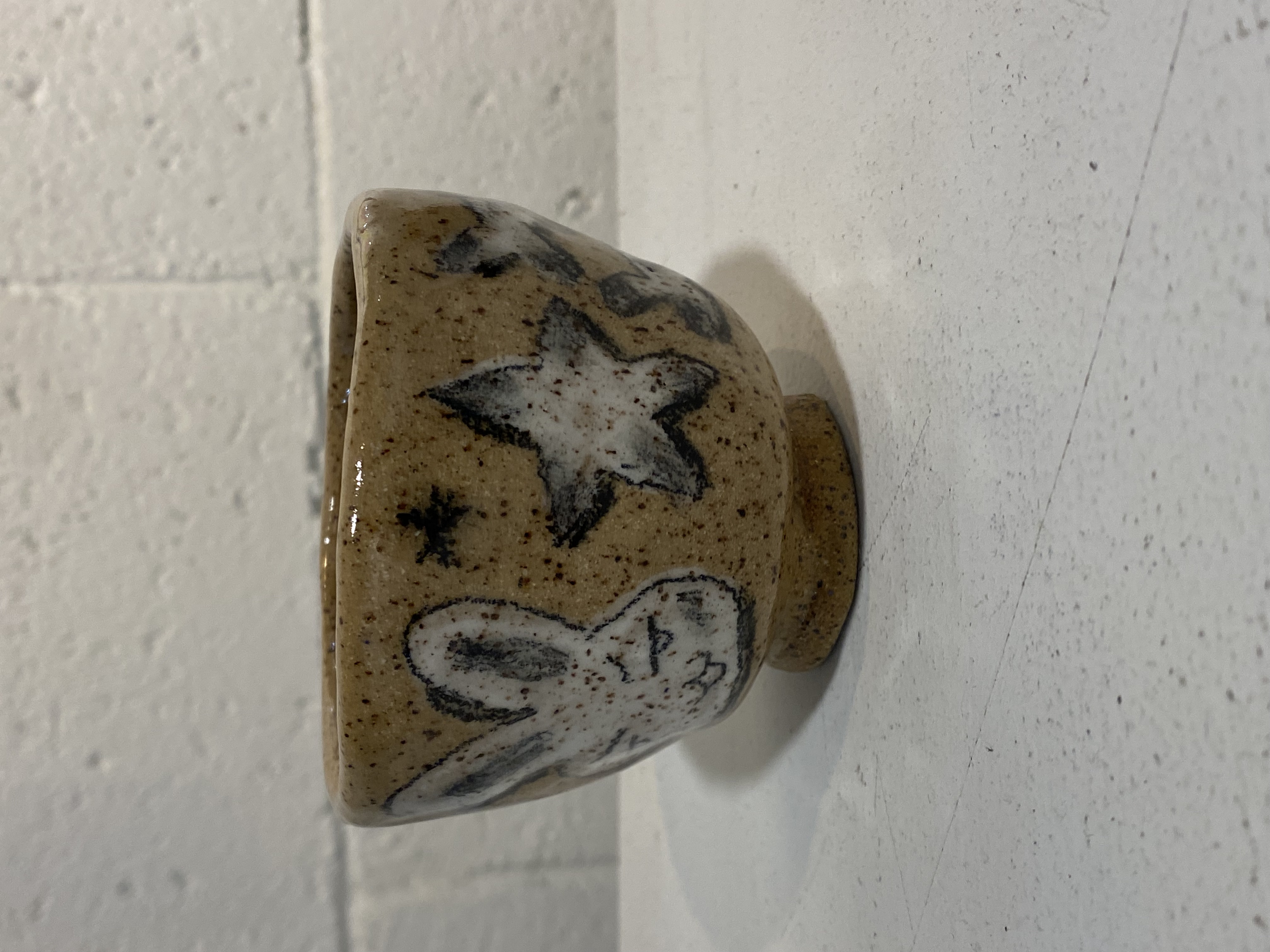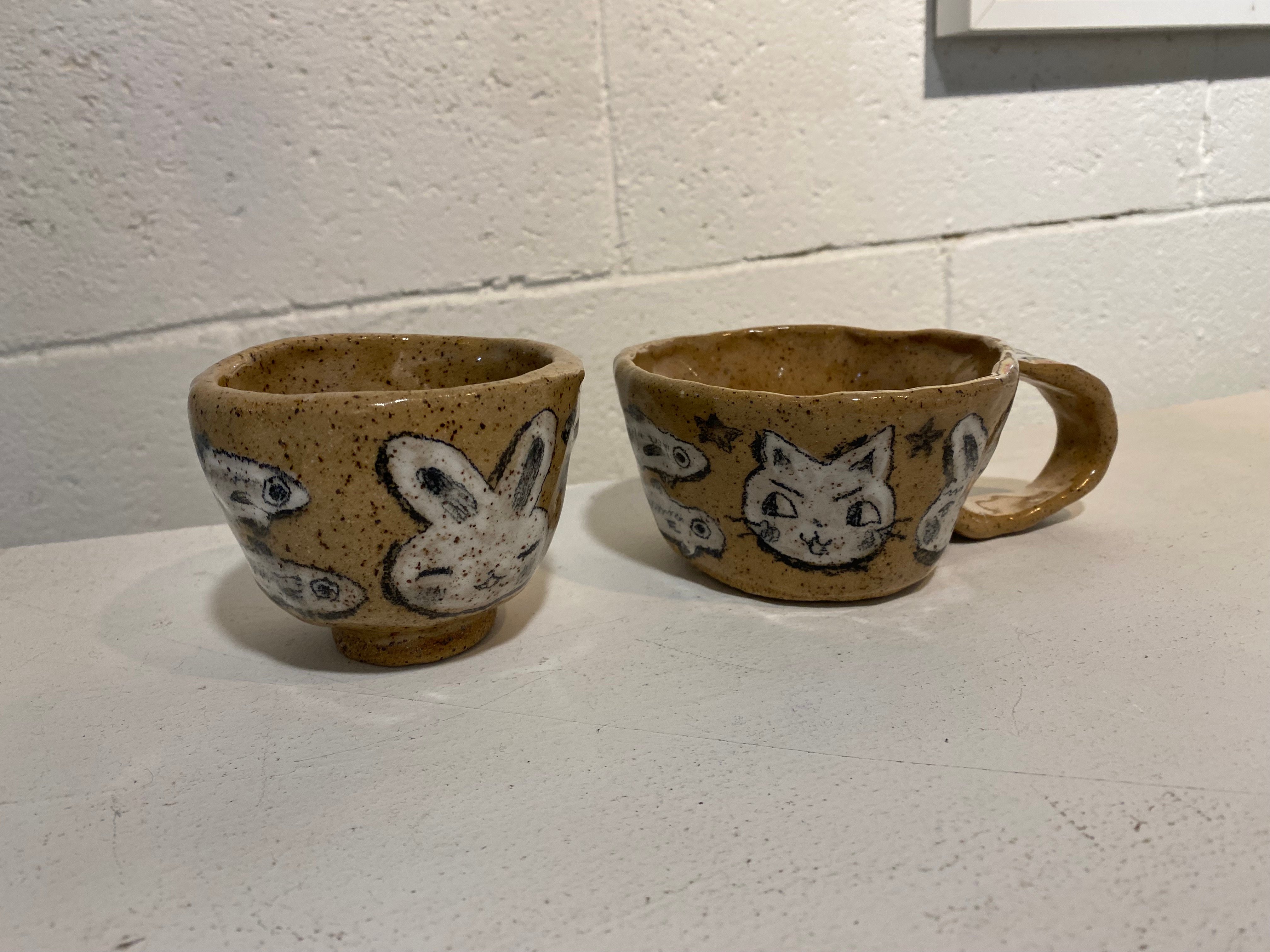 🔴 SOLD Hand Painted Pottery "Bunny and Fish Tea Cup 2" by Inika Agarwal