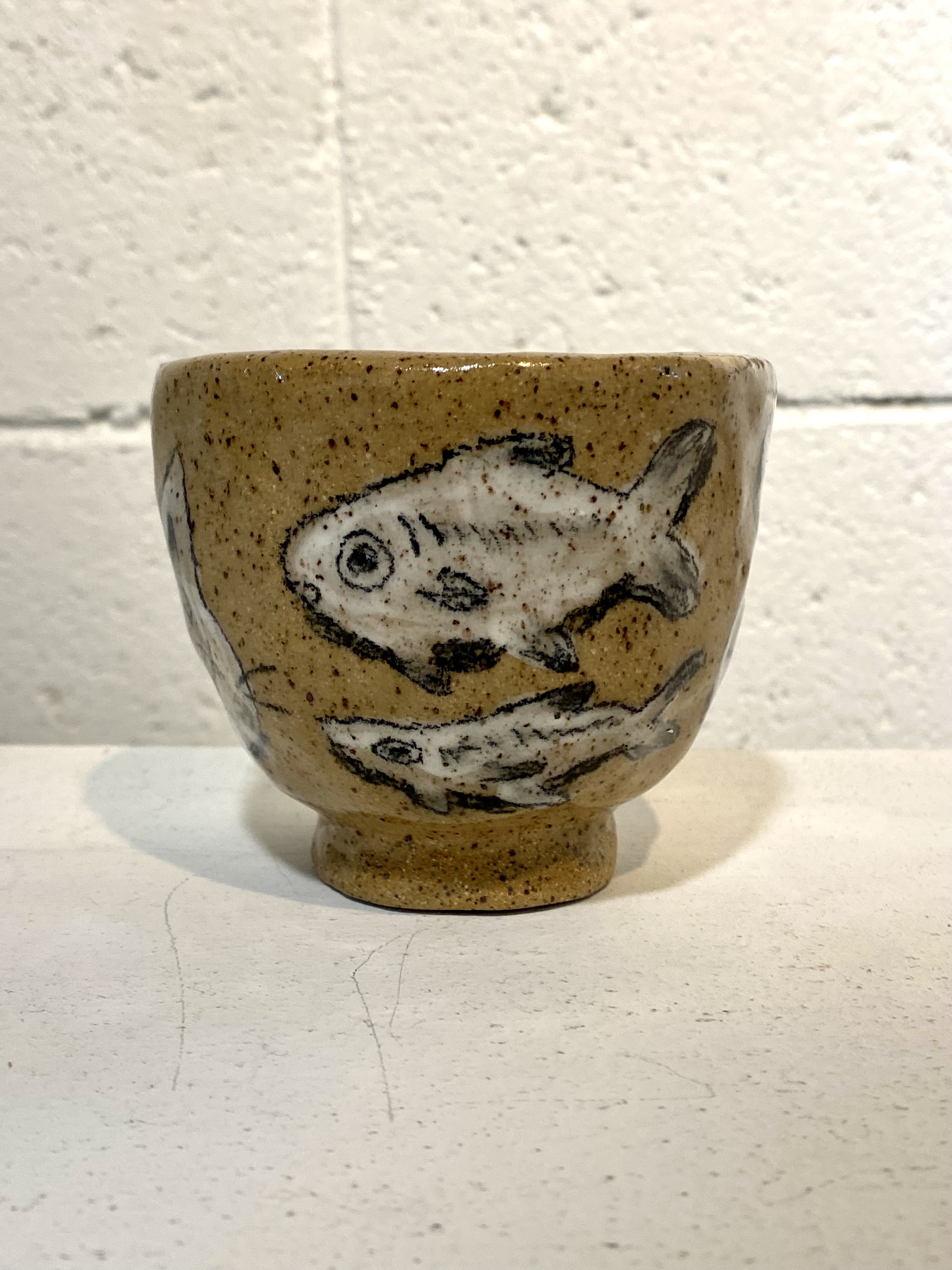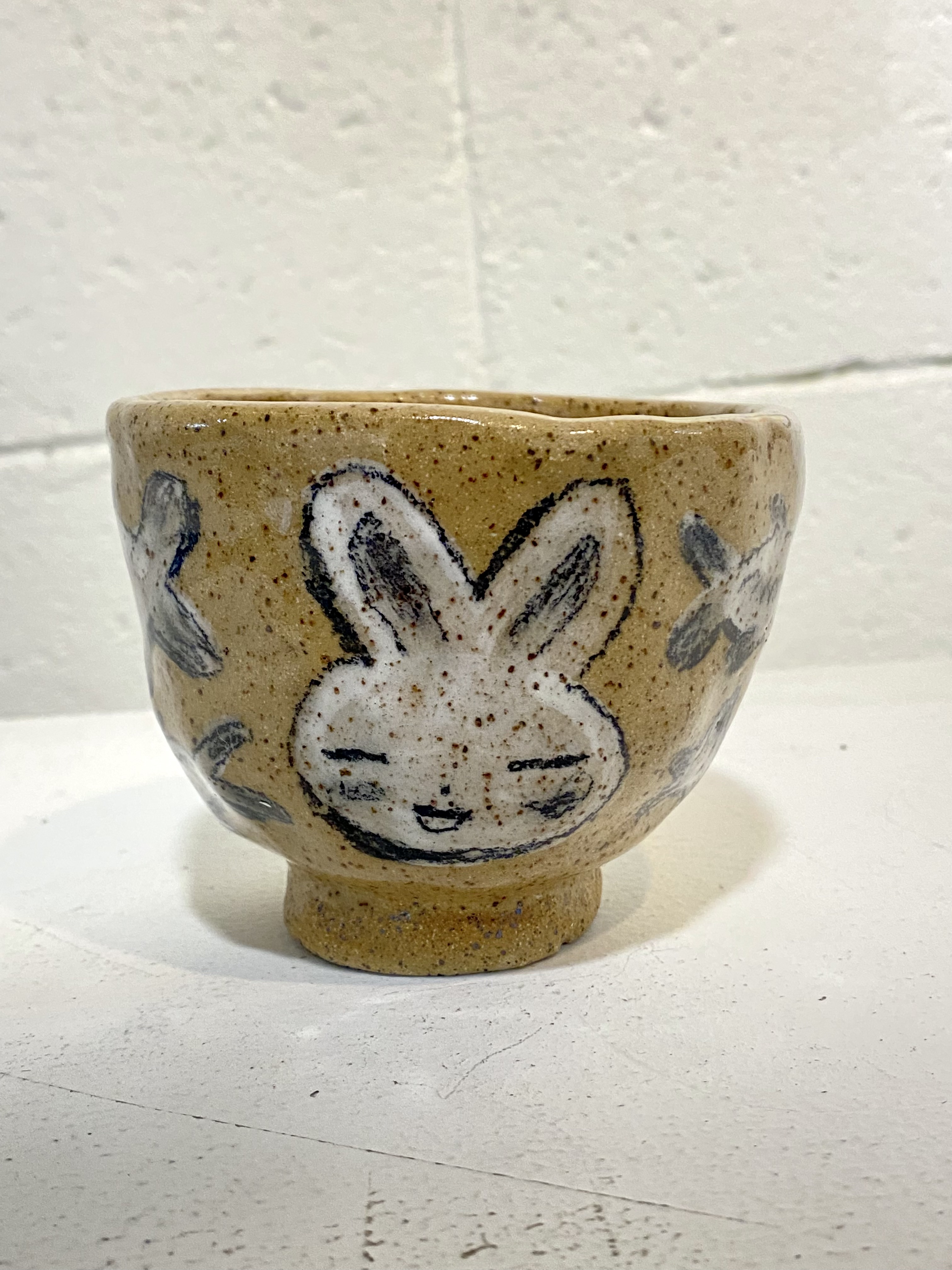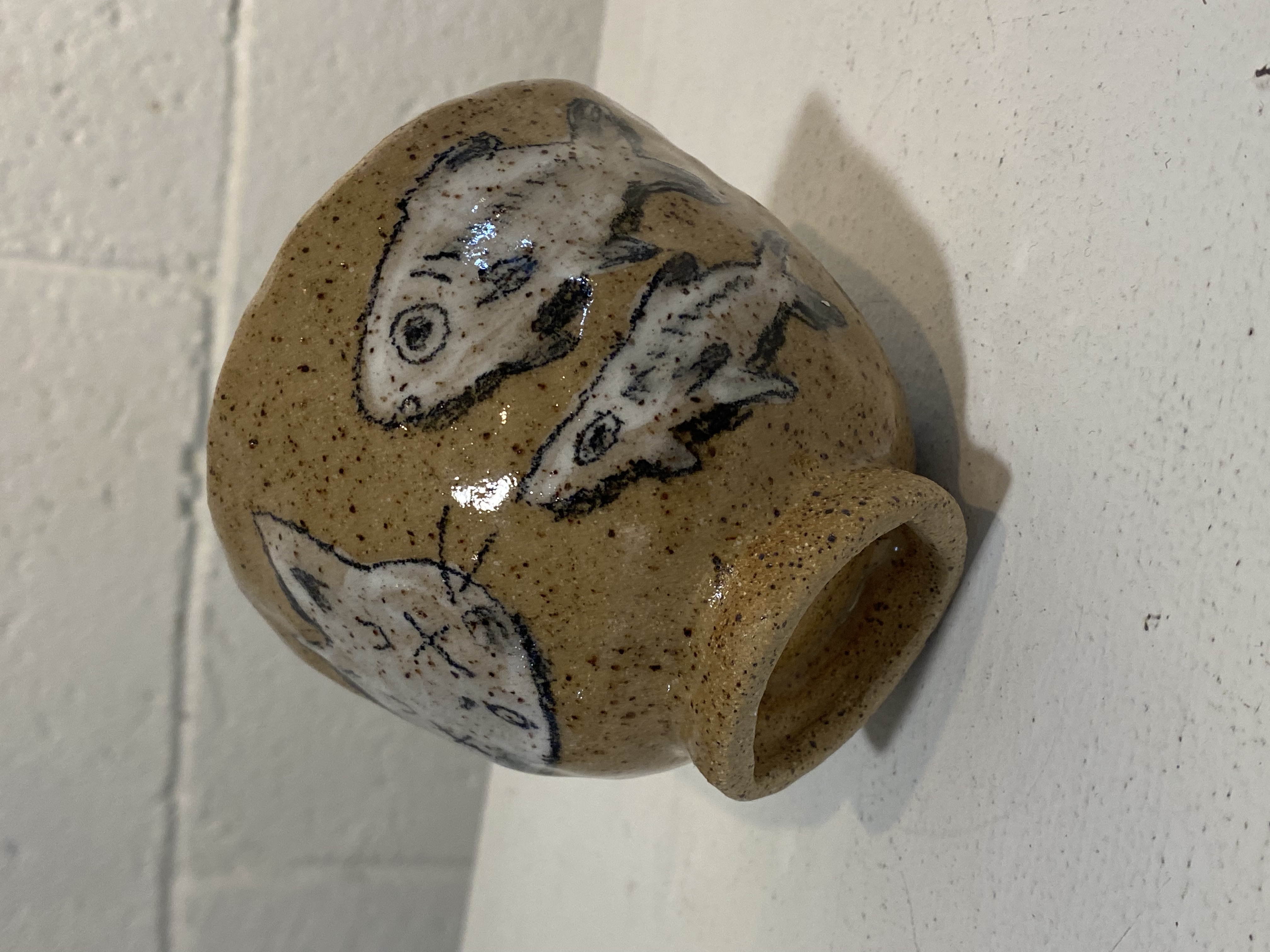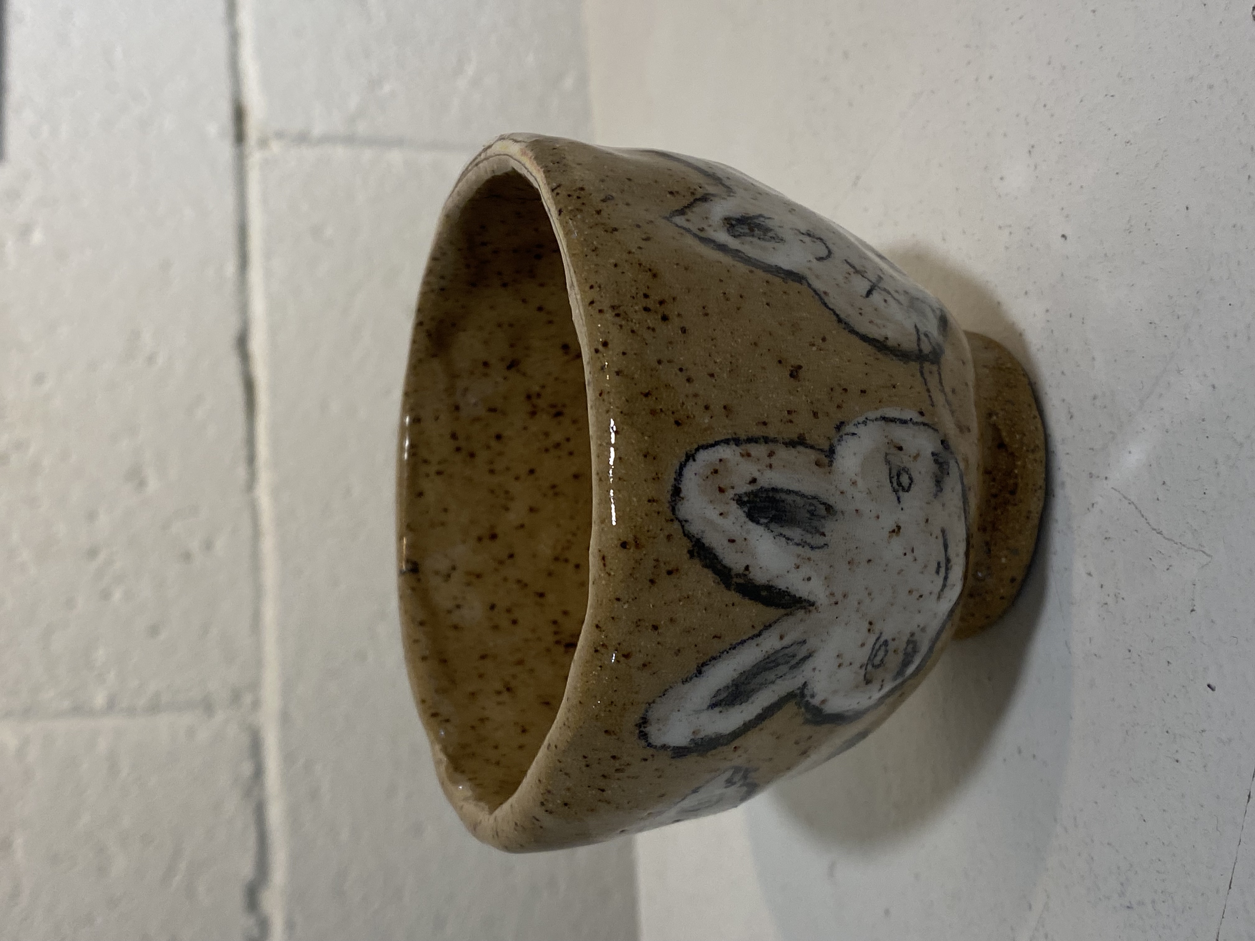 🔴 SOLD Hand Painted Pottery "Bunny and Fish Tea Cup 1" by Inika Agarwal