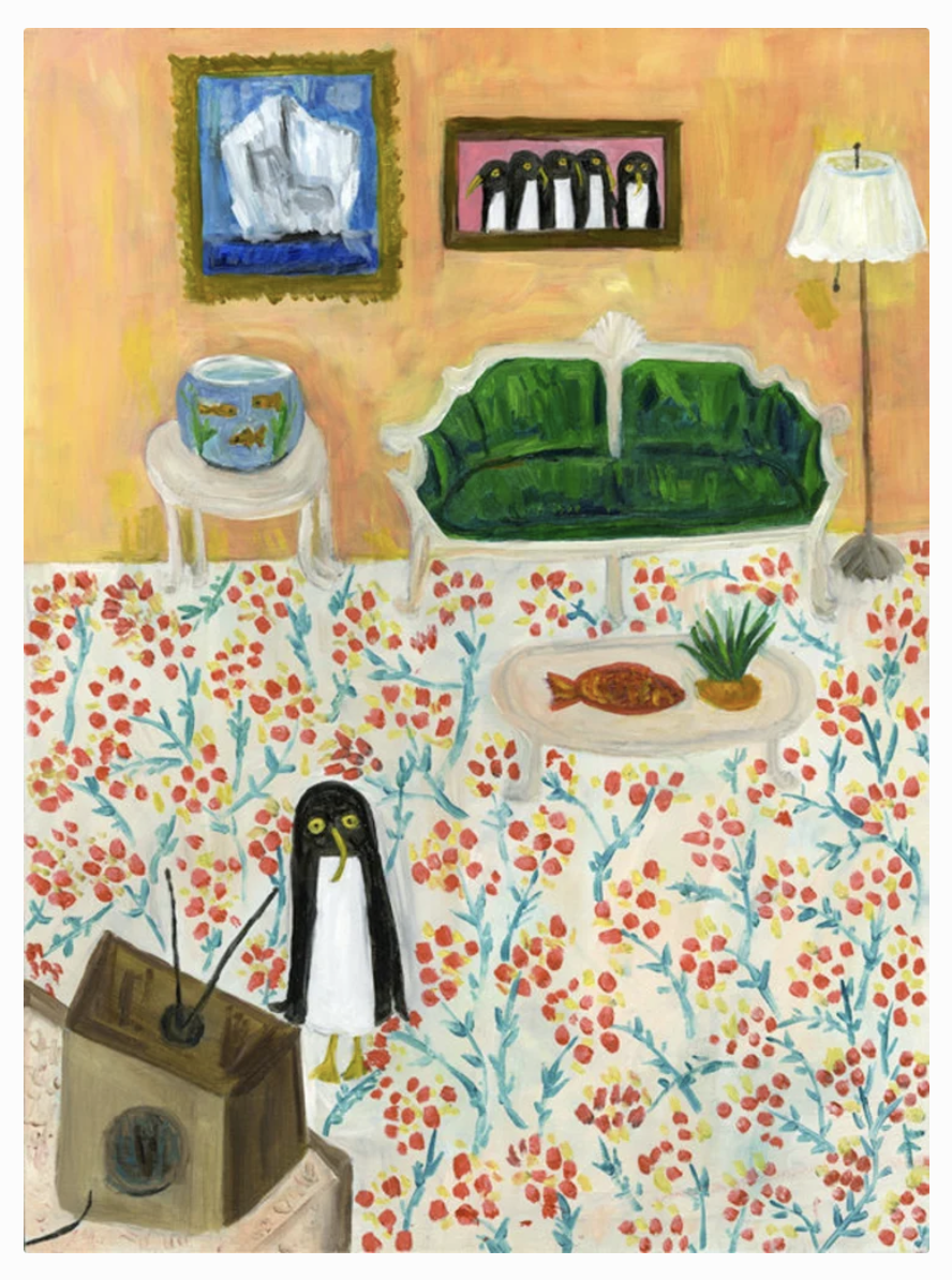 🔴 SOLD "Misha living alone for the first time, becomes hopelessly addicted to television" Signed Giclee Print by Vivienne Strauss -Framed-