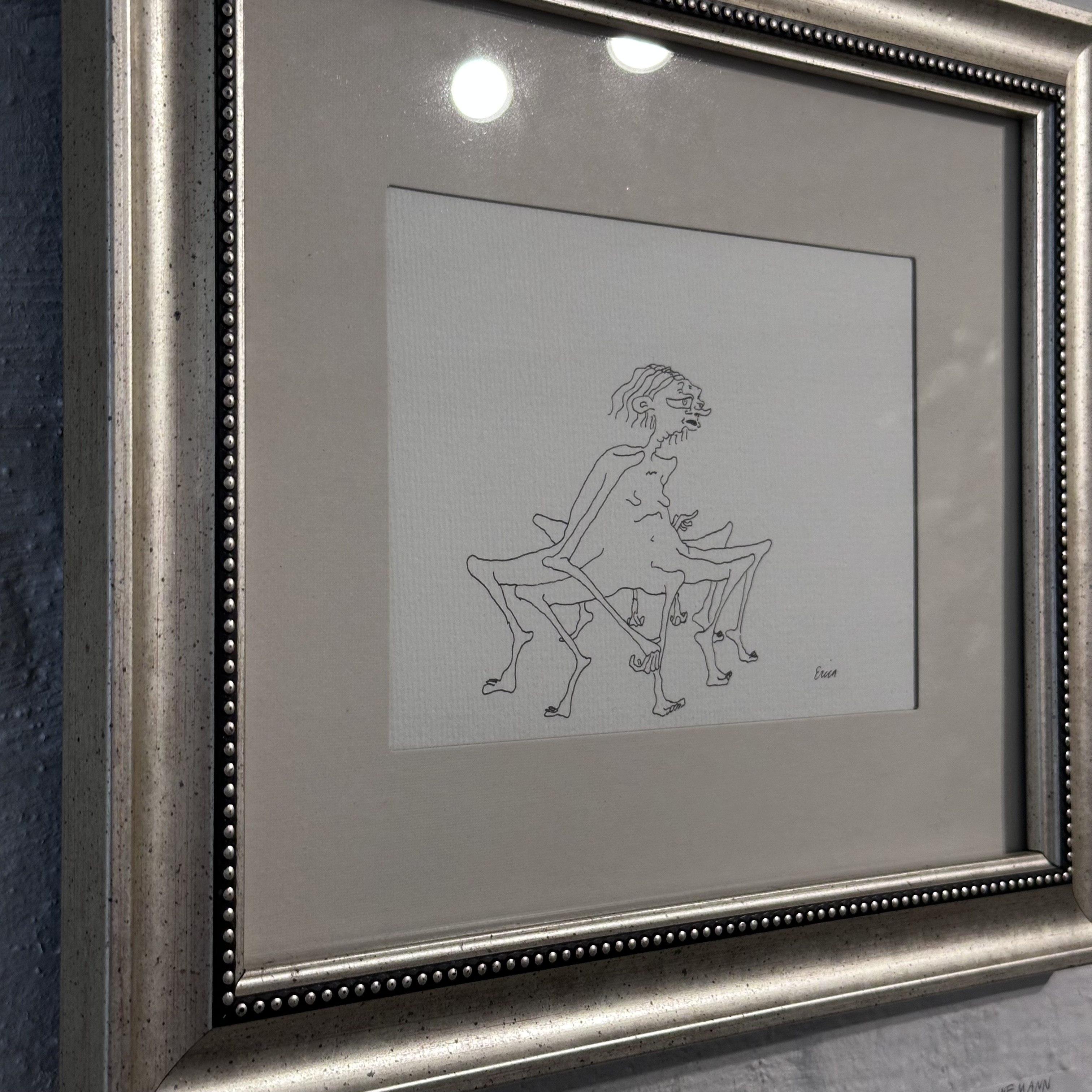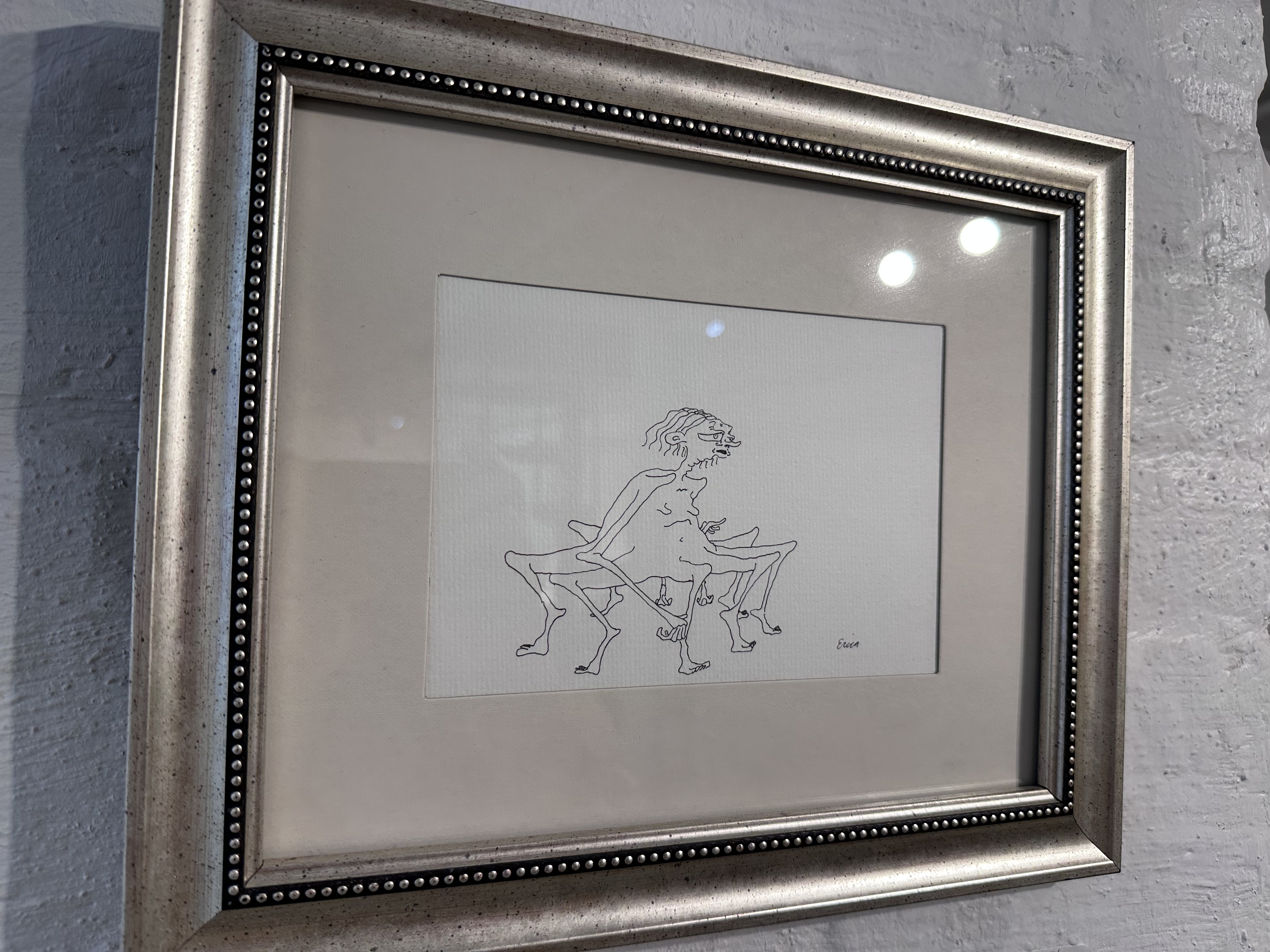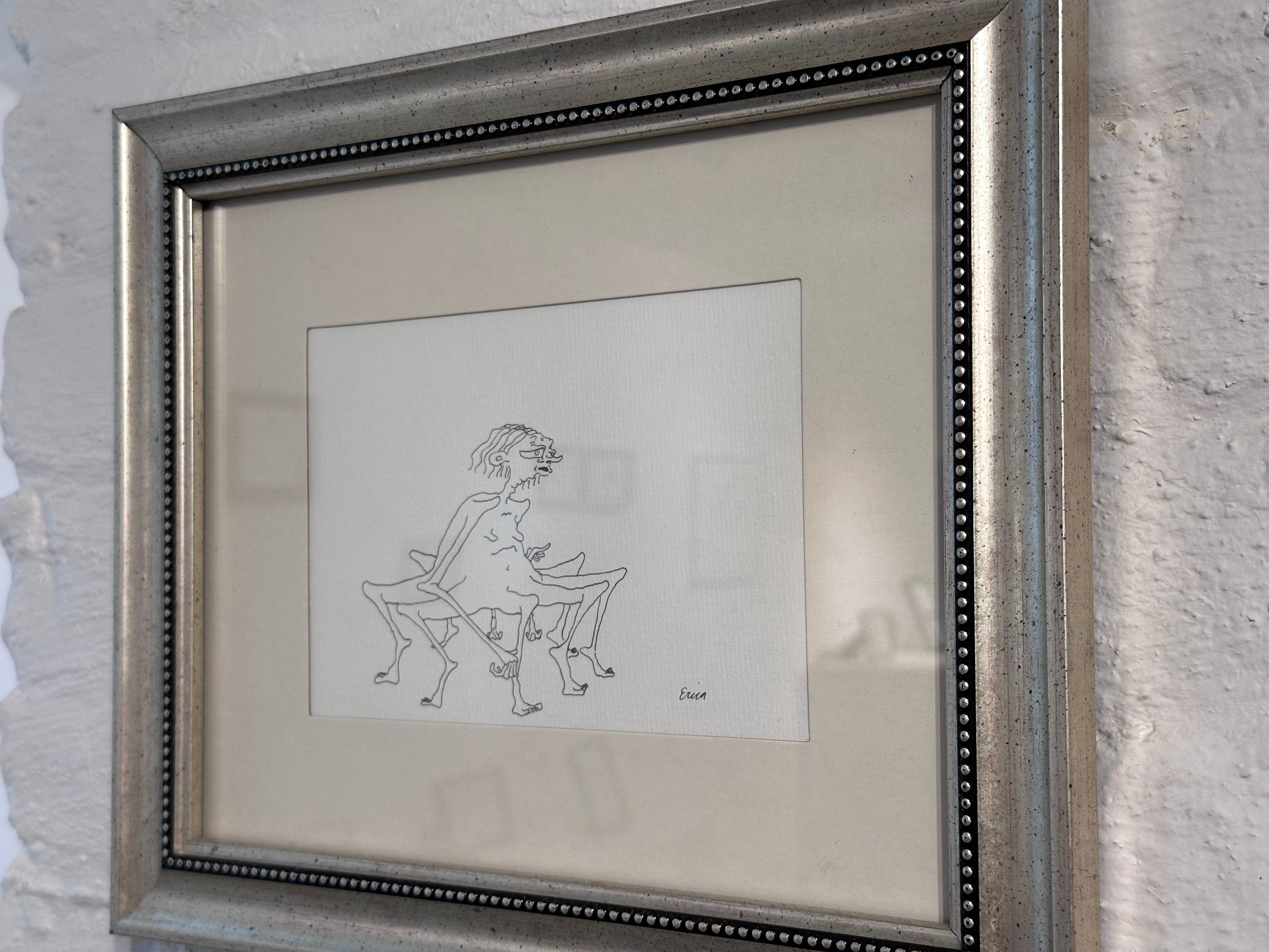 Ink on paper, framed in a vintage frame.
